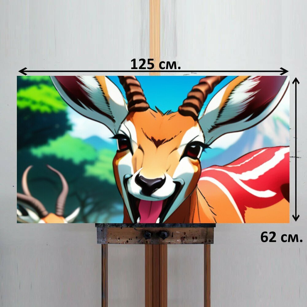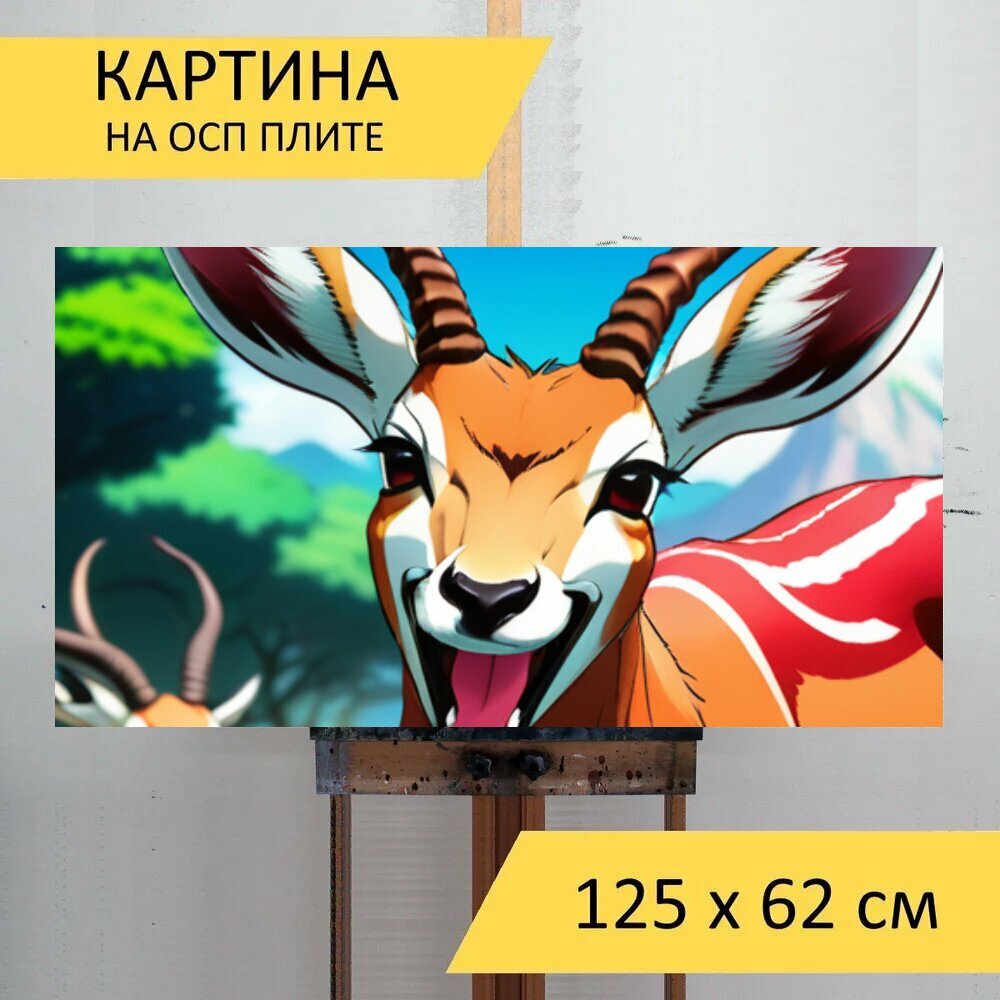 Картина на ОСП В детскую комнату "Животные, звери, антилопа смеется" 125x62 см. для интерьера на стену интересное: