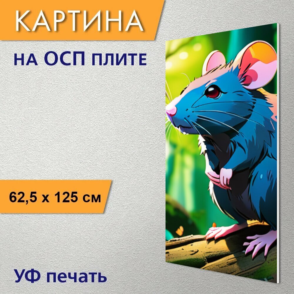 Вертикальная картина на ОСП В детскую комнату "Животные, звери, крыса в лесу" 62x125 см. для интерьера на стену интересное: