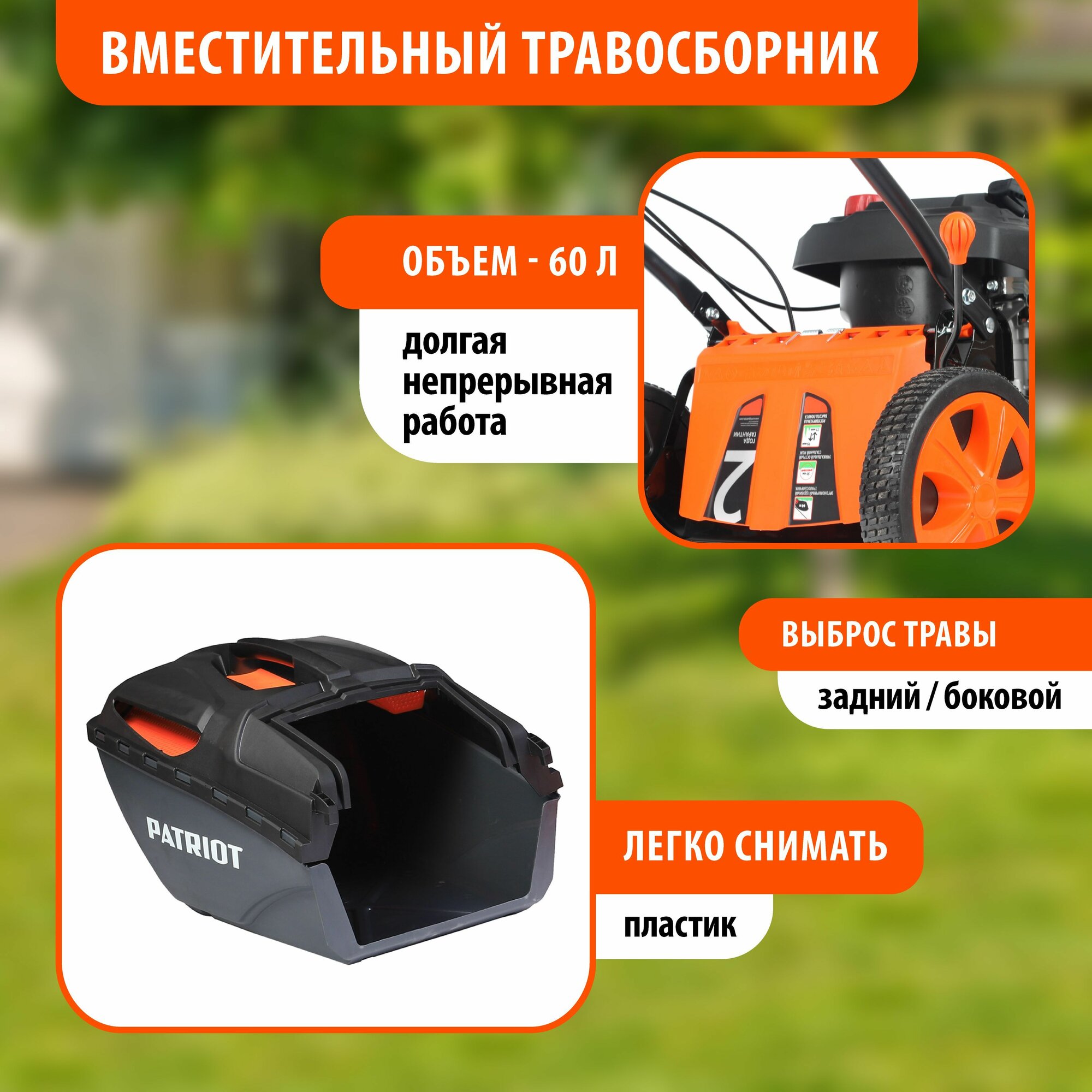 Газонокосилка бензиновая самоходная Patriot PT 52LS, 6,5 л.с, 60 л