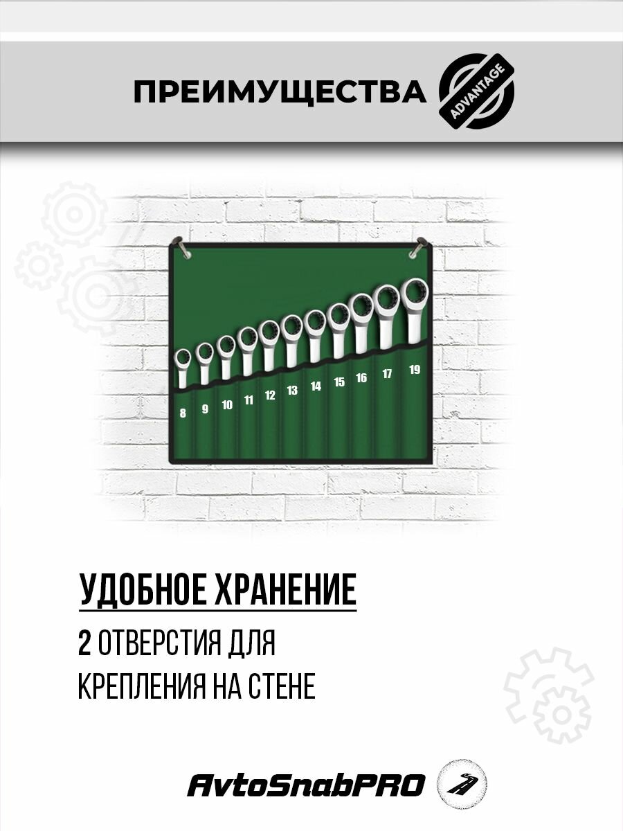 Набор инструментов ключей гаечных комбинированных трещоточных 11 предметов в мягкой сумке интересное: