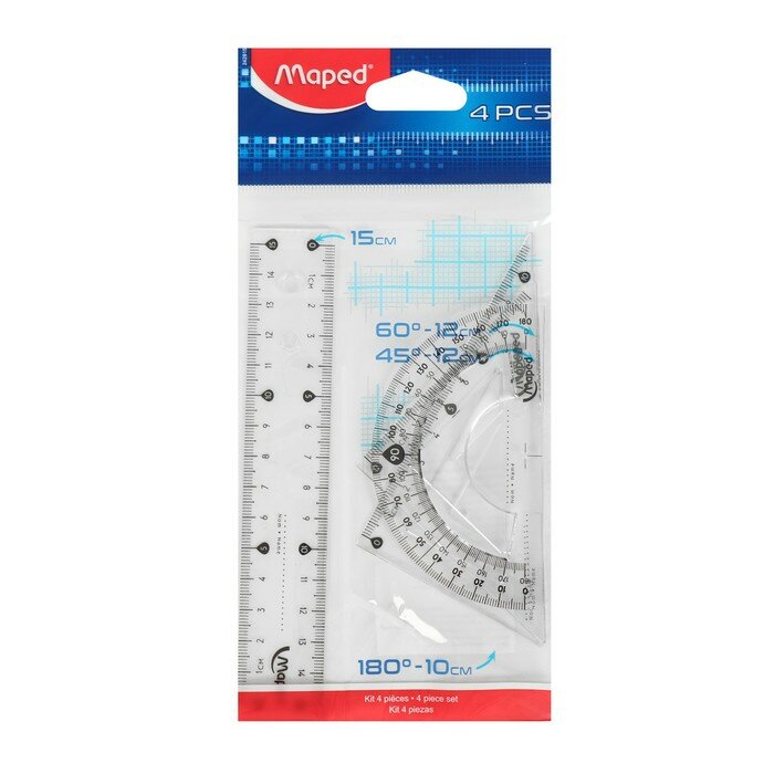 Набор чертежный малый Maped Start (треугольники 2шт., линейка 15см, транспортир) блистер (242815)