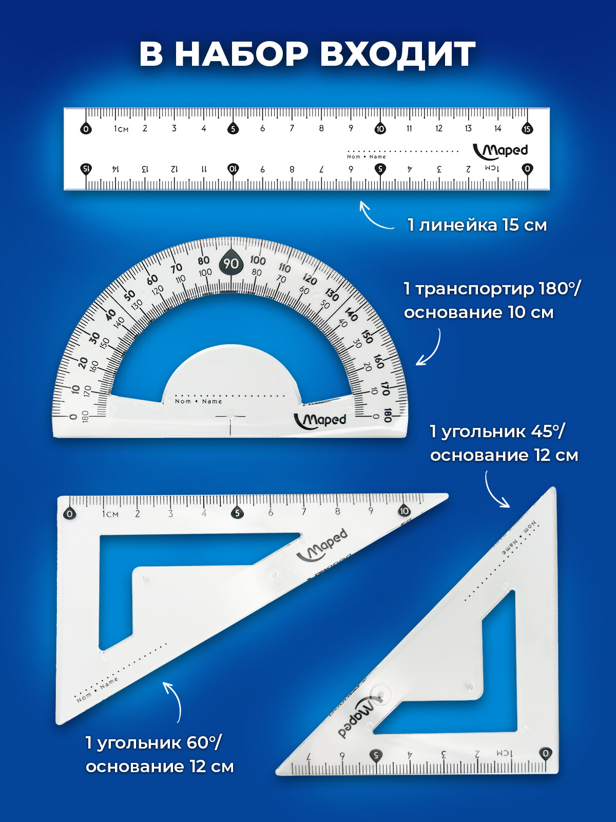 Ниже Вы можете прочитать отзывы на Набор чертежный Maped малый "Start" (линейка 15 см, 2 угольника, транспортир) (242815), ознакомится с подробными характеристиками, посмотреть интересные обзоры и фотографии на Набор чертежный Maped малый "Start" (линейка 15 см, 2 угольника, транспортир) (242815).
