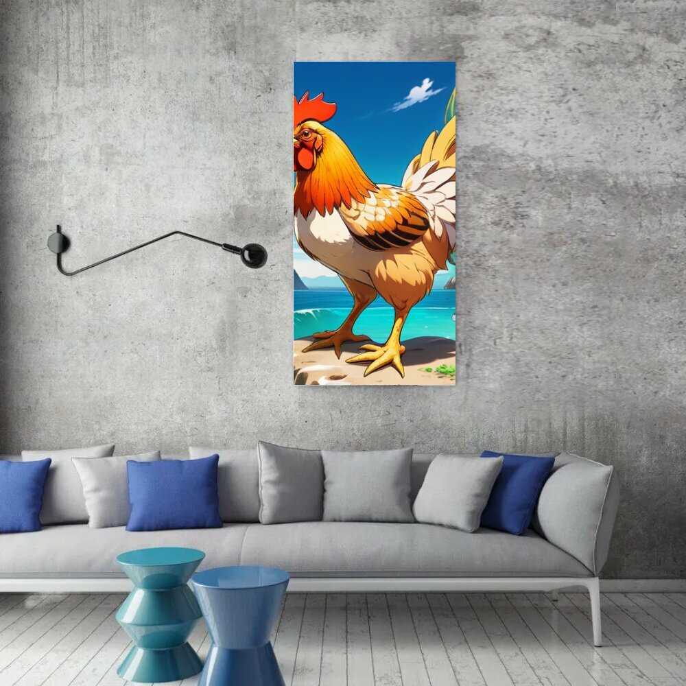 Купить Вертикальная картина на ОСП В детскую комнату "Животные, звери, курица на море" 62x125 см. для интерьера на стену