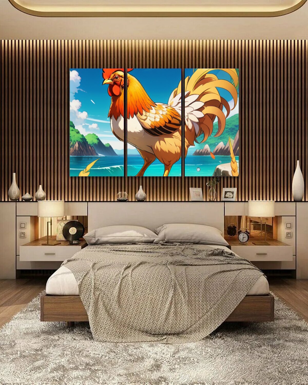 СохранитьМодульная картина на ОСП В детскую комнату "Животные, звери, курица на море" 188x125 см. 3 части для интерьера на стену интересное: