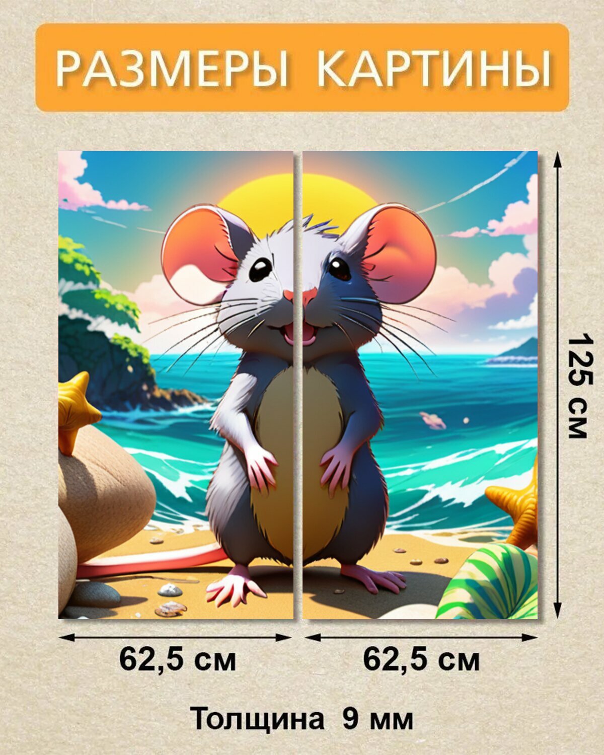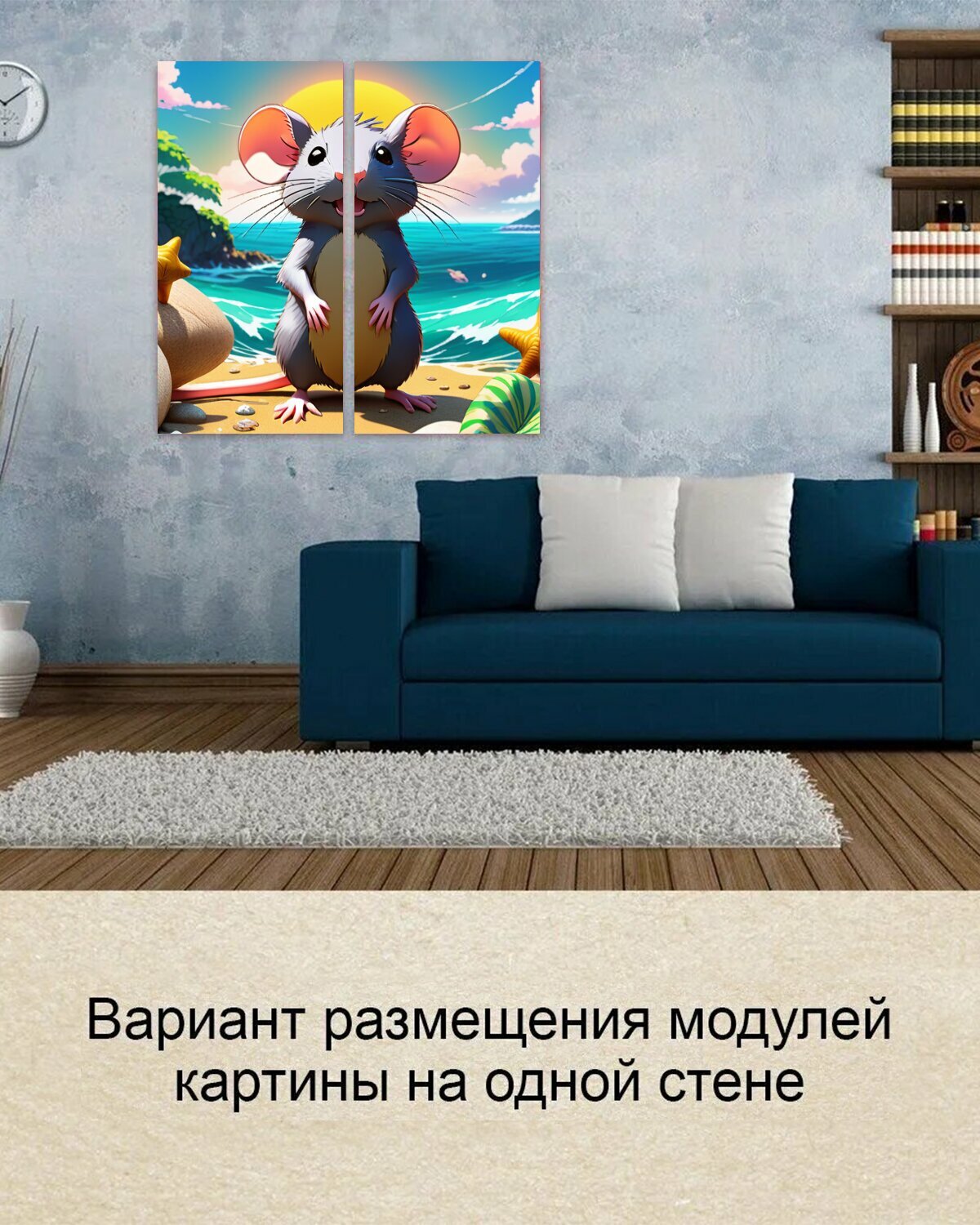 Купить Модульная картина на ОСП В детскую комнату "Животные, звери, крыса на море" 125x125 см. 2 части для интерьера на стену