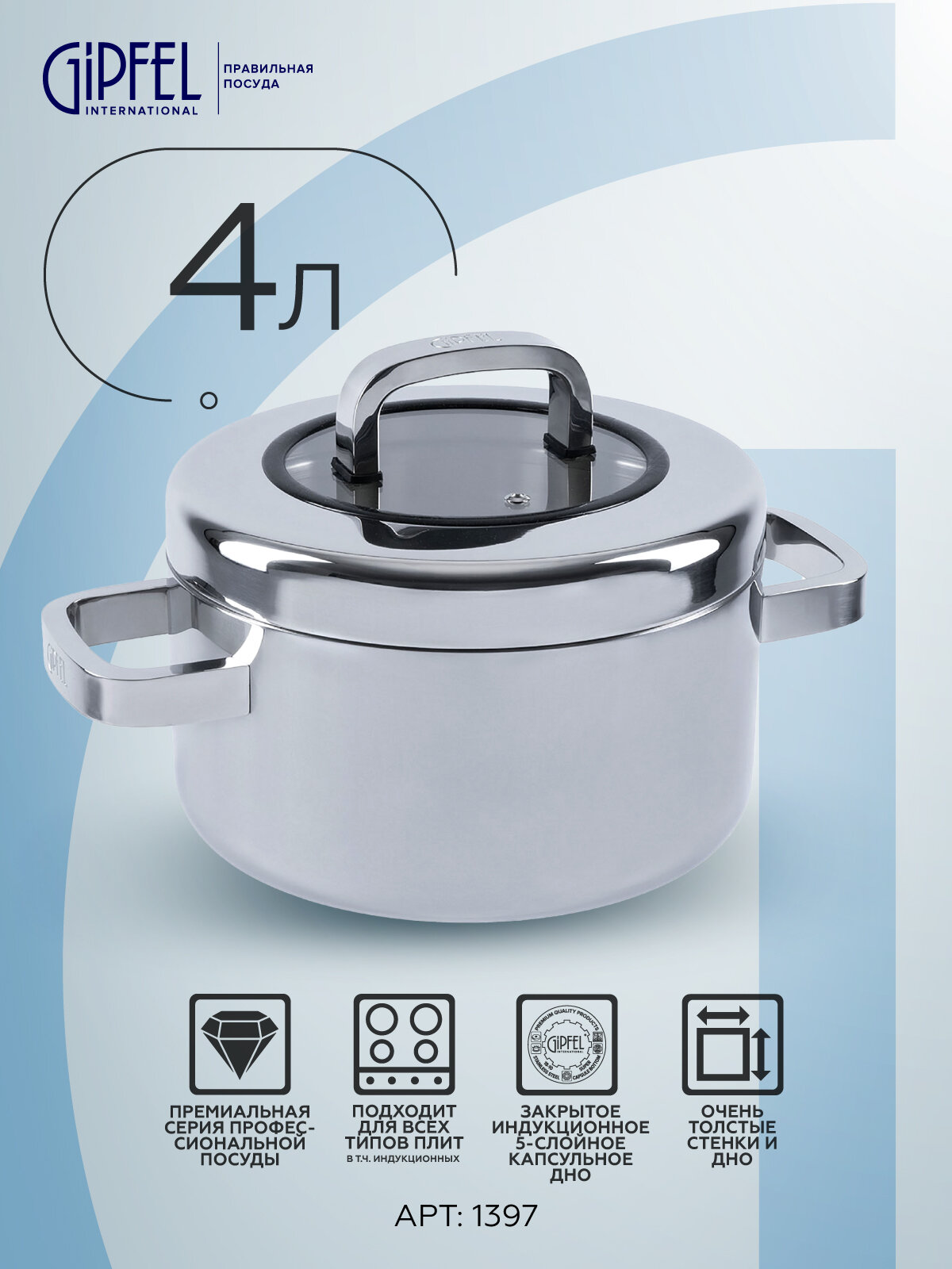 Кастрюля из нержавеющей стали Gipfel Aventus 1397 22 см/4 л стальной интересное: