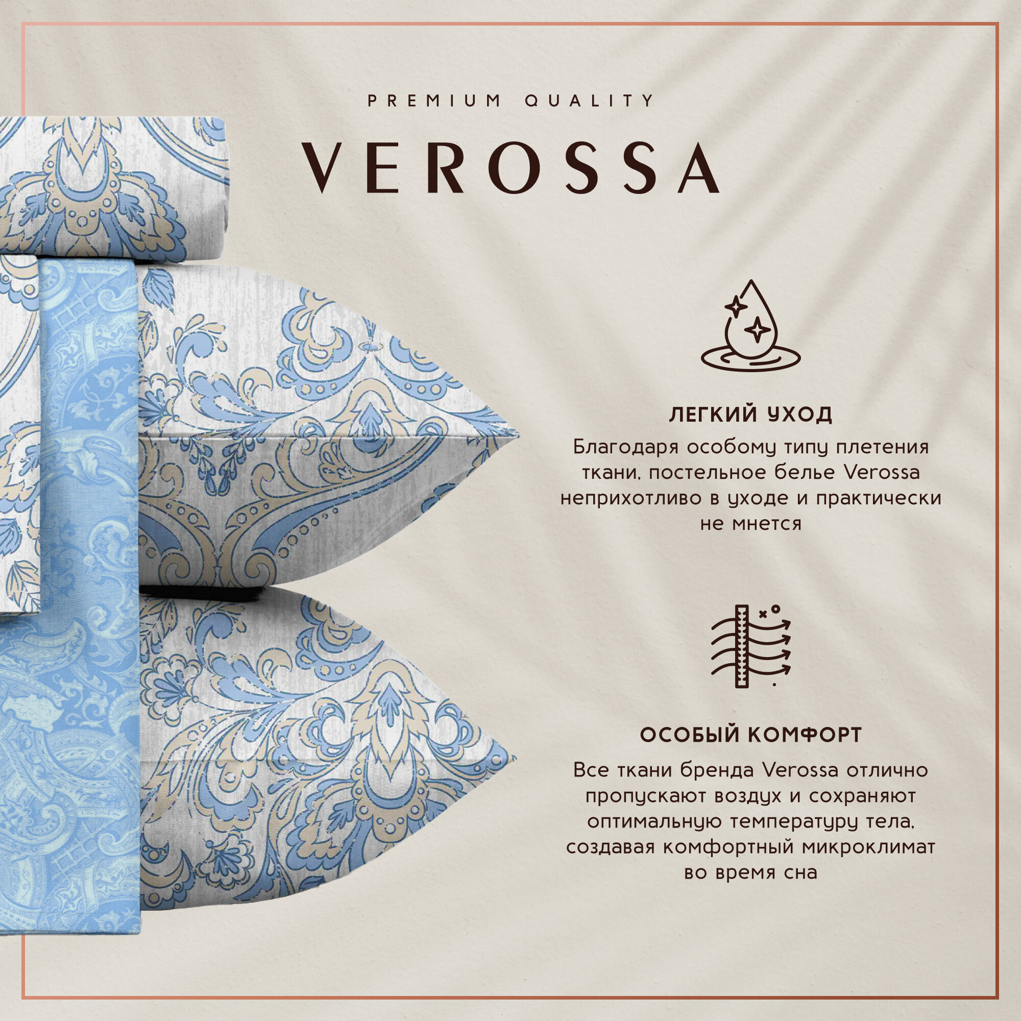 Комплект постельного белья евро, Verossa, дизайн-Manisa, 4 наволочки-50х70см и 70х70см, ткань-Сатин-люкс, упаковка-Чемоданчик
