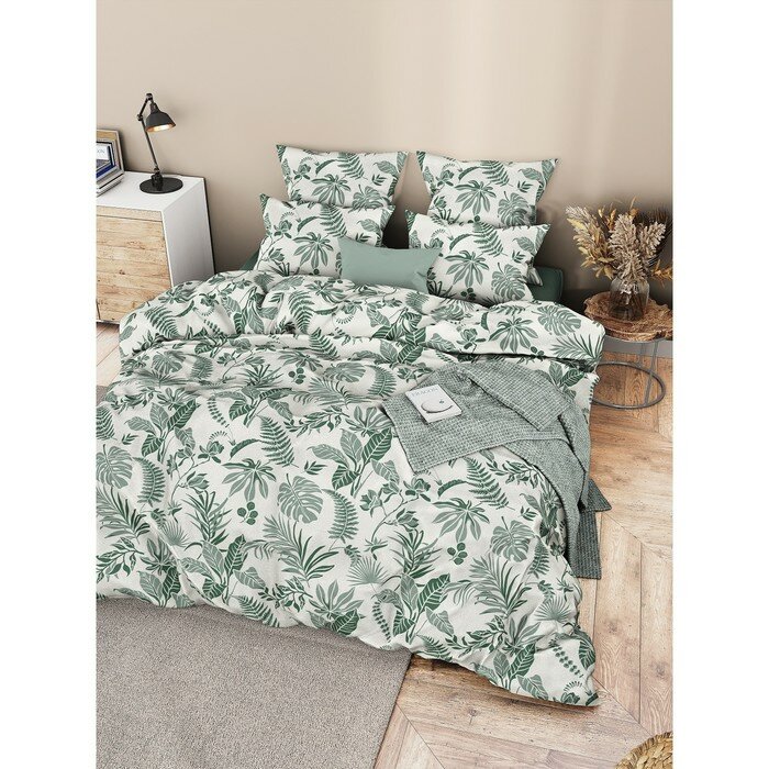 Купить Постельное белье 1.5-спальное Поплин (2 наволочки 50x70) Ночь Нежна Зеленые джунгли 71059-1+71060-1