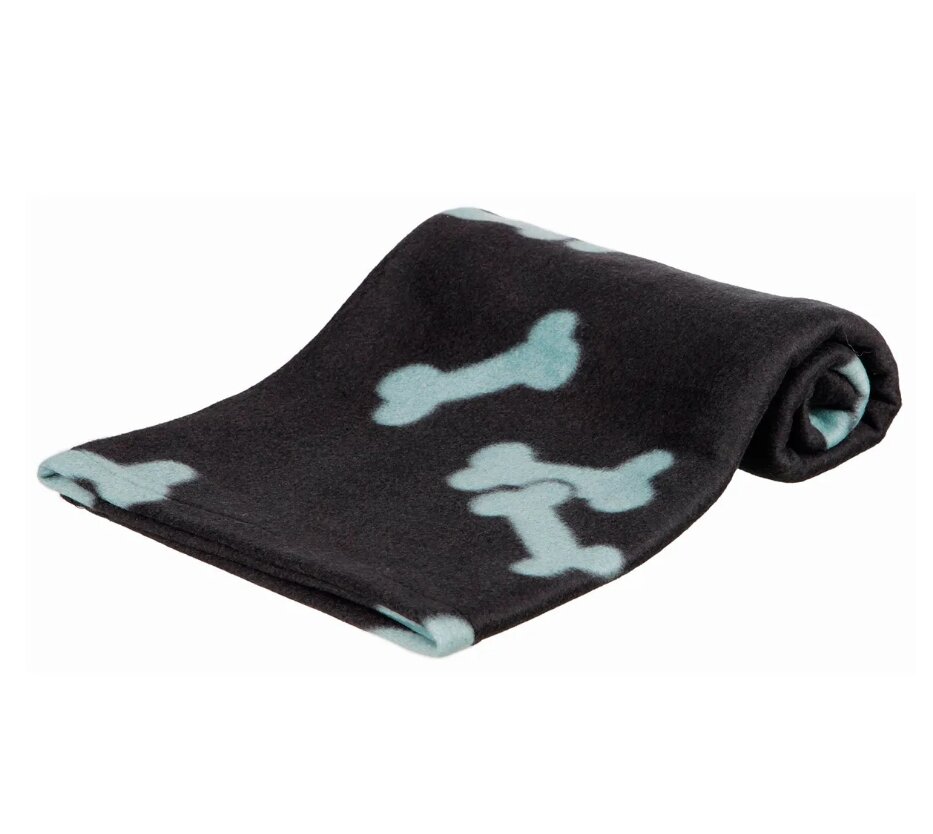 Подстилка-плед для животных Trixie Beany с рисунком "косточки", флис, чёрный, 100х70 см