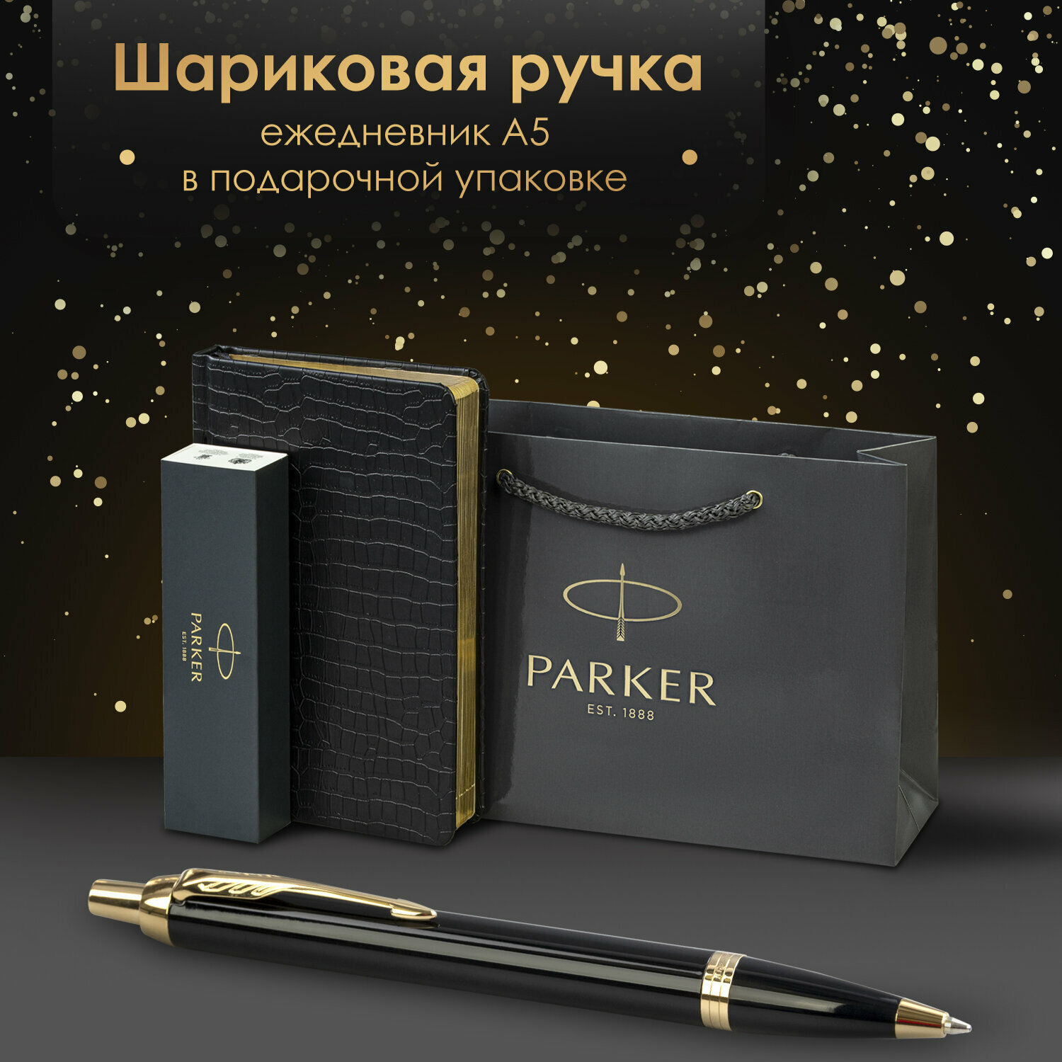 Подарочный набор Parker Ручка шариковая, ежедневник А5 черный, золотой срез