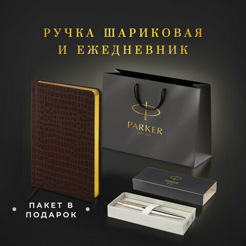 Подарочный набор Parker Ручка шариковая, ежедневник А5 черный, золотой срез