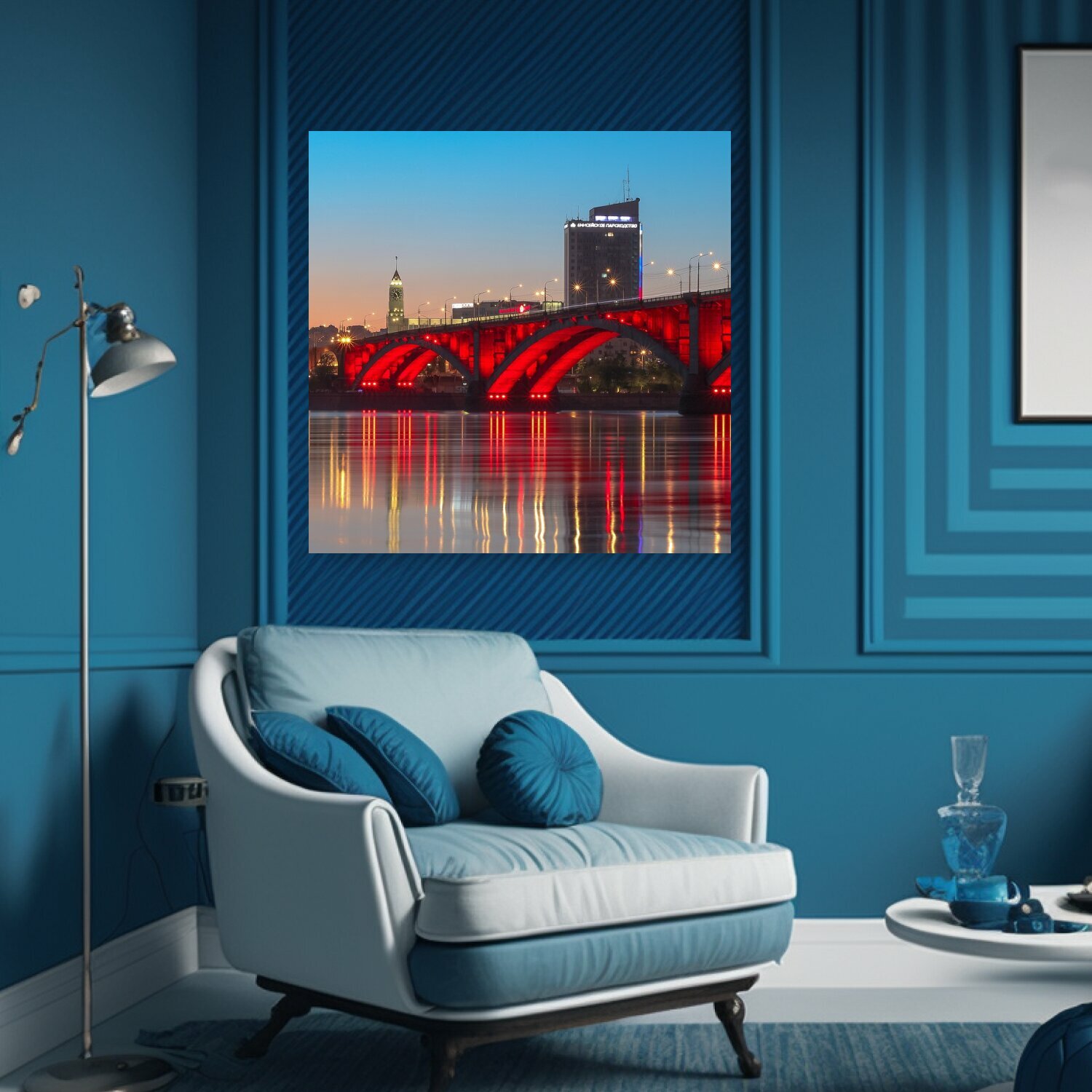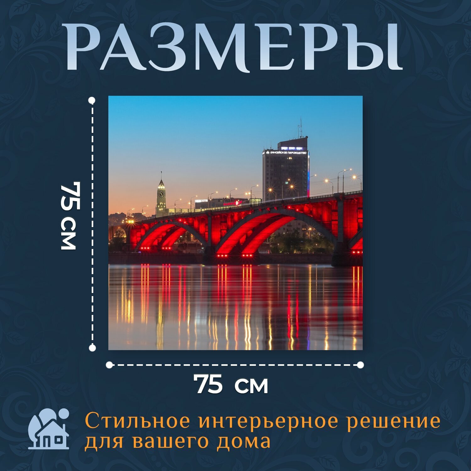 СохранитьКартина на холсте "Красноярск, мост, река" на подрамнике 75х75 см. для интерьера интересное: