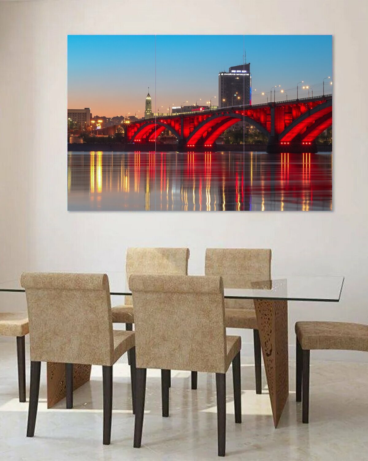 СохранитьМодульная картина на ОСП "Красноярск, мост, река" 188x125 см. 3 части для интерьера на стену интересное: