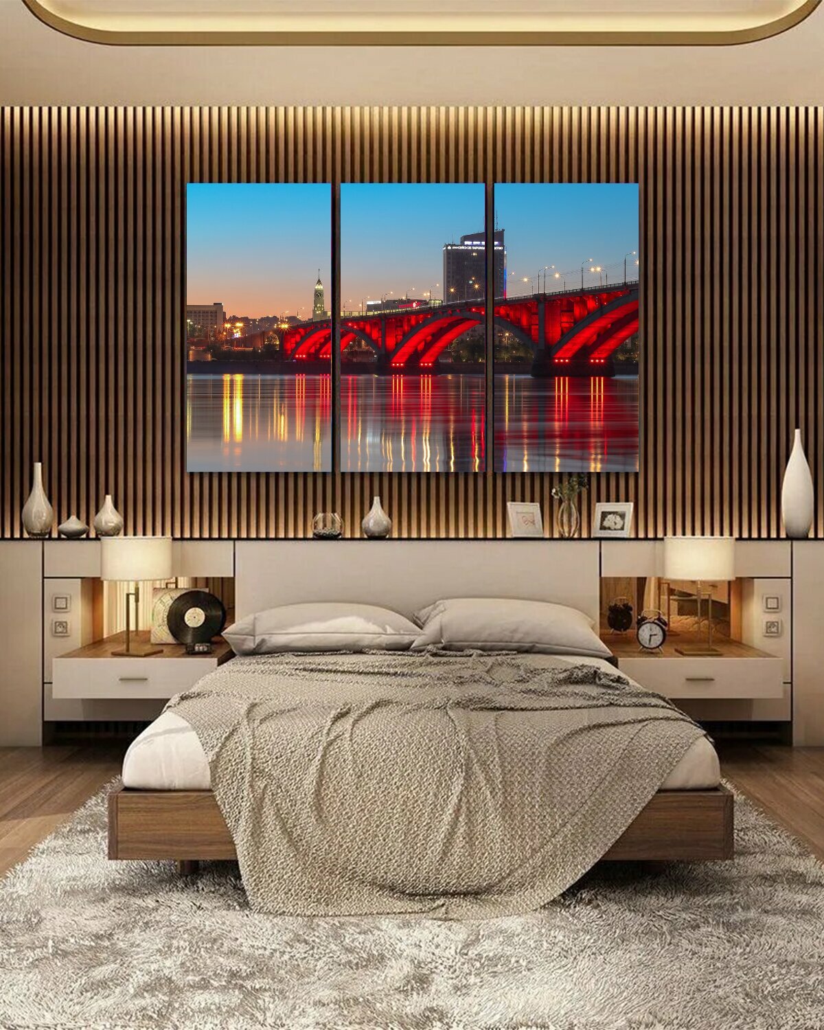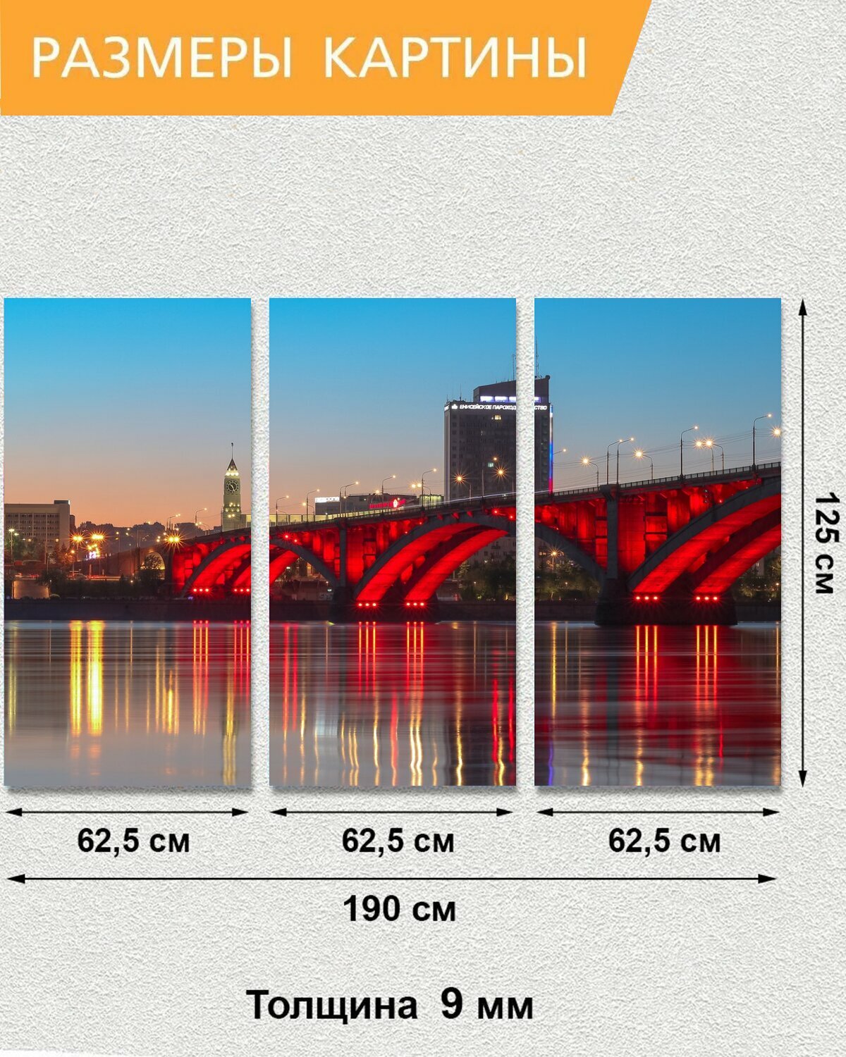Купить Модульная картина на ОСП "Красноярск, мост, река" 188x125 см. 3 части для интерьера на стену