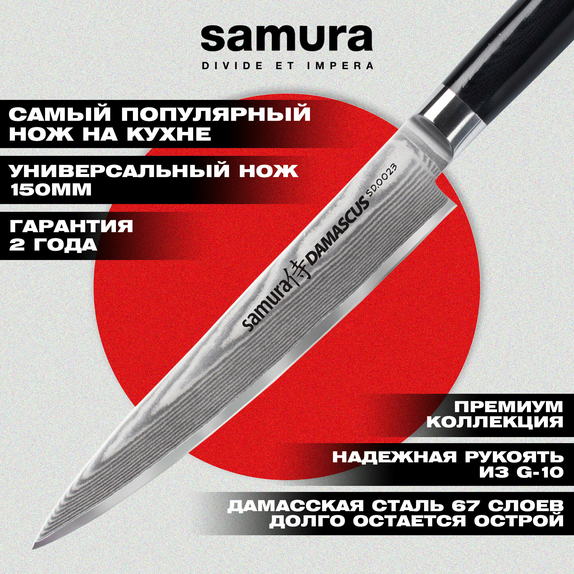 Нож кухонный универсальный Samura DAMASCUS, дамасская сталь, 150 мм (SD-0023/K)