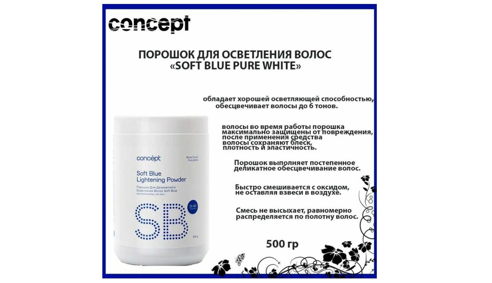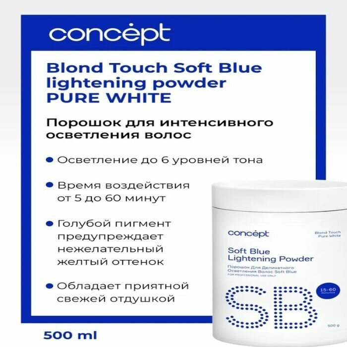 Concept, Порошок для осветления волос (Soft Blue Lightening Powder), 500 г