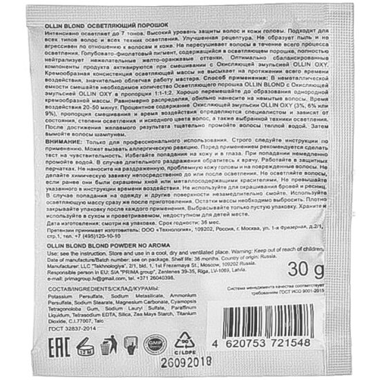 СохранитьOllin Professional OLLIN BLOND Осветляющий порошок 30 грамм. интересное: