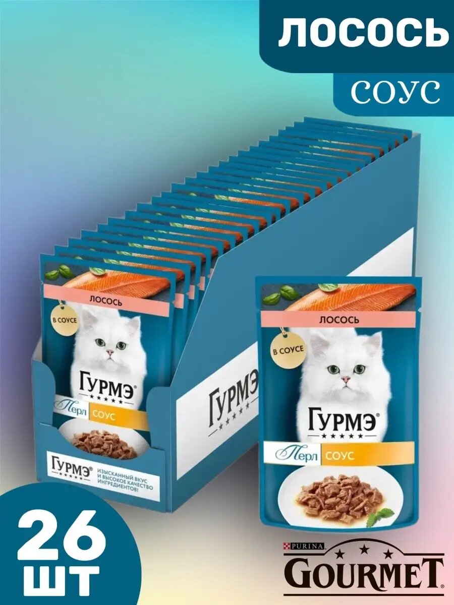 Влажный корм Гурмэ Перл Соус Де-люкс для кошек, с лососем в роскошном соусе, Пауч, 75 г х 26 шт