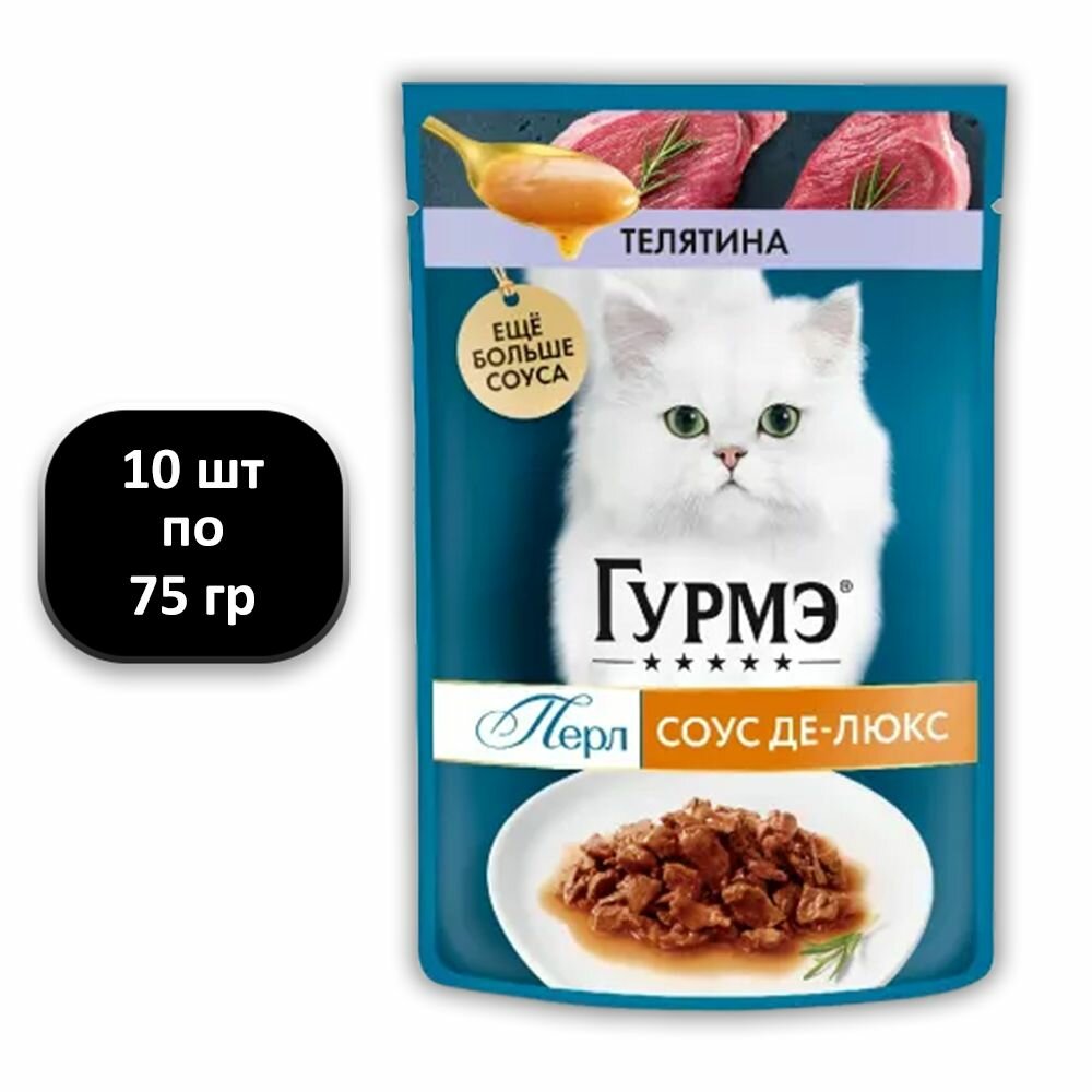 Купить Гурмэ перл соус де-люкс для взрослых кошек с телятиной в соусе пауч 75 гр 75 гр х 10 шт