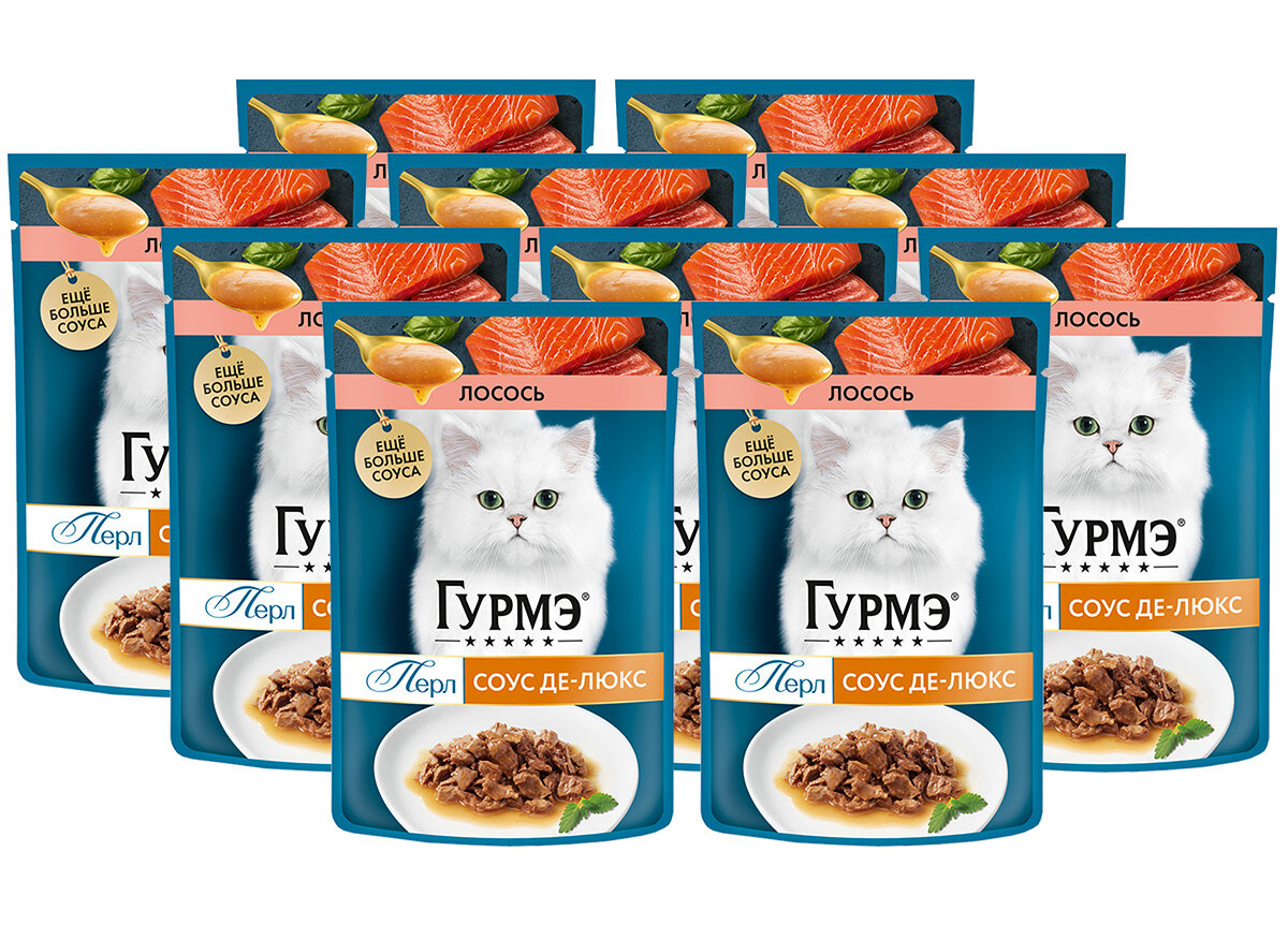 Купить Гурмэ перл соус де-люкс для взрослых кошек с лососем в соусе пауч 75 гр NEW 75 гр х 10 шт