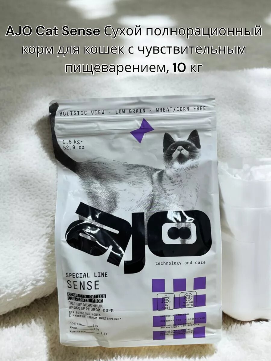 Сухой полнорационный корм AJO Cat Sense для кошек с чувствительным пищеварением, 10кг
