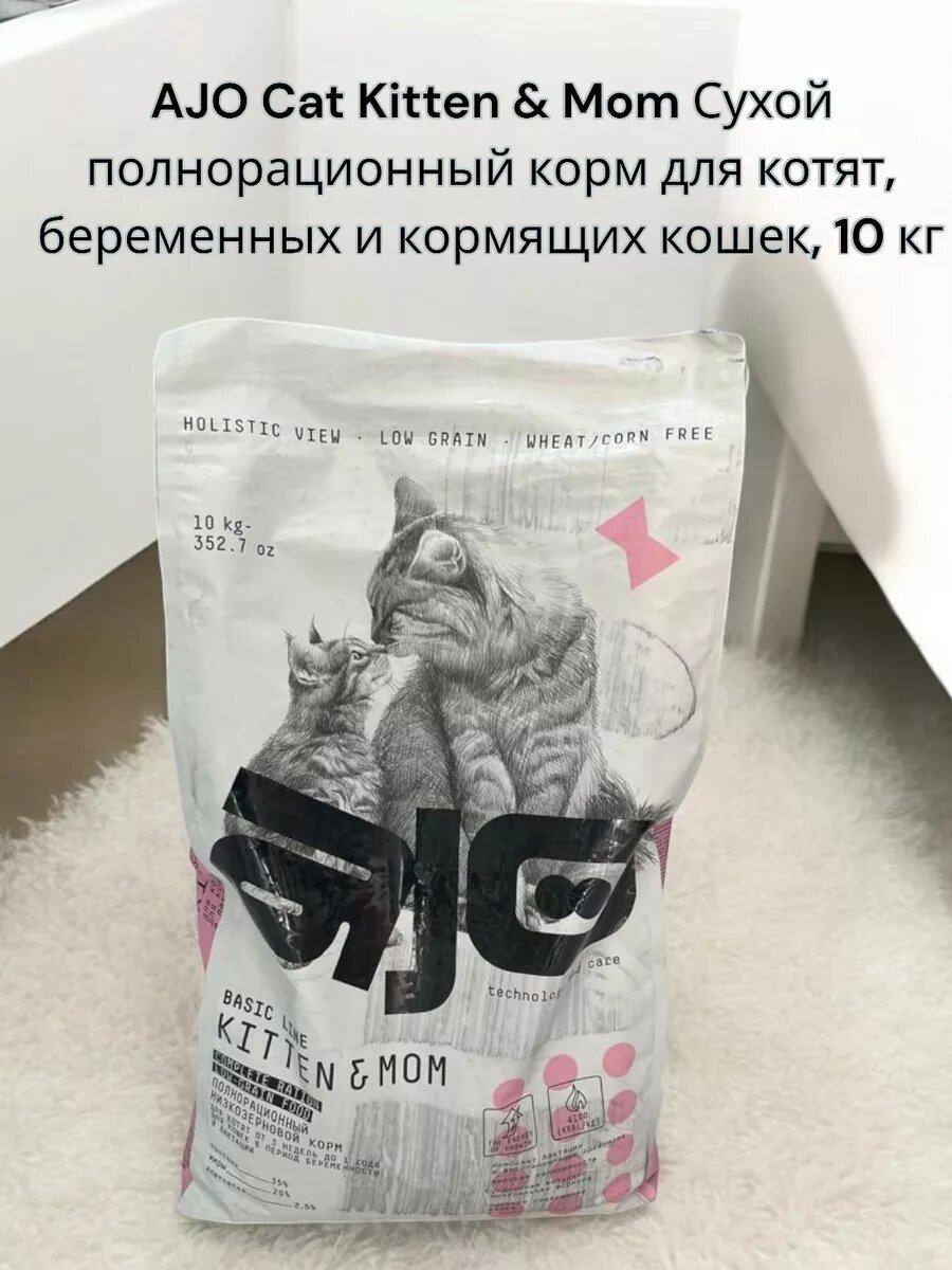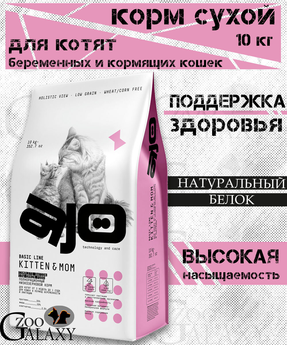 Купить AJO Cat Kitten & Mom 10 кг сухой полнорационный корм для котят, беременных и кормящих кошек с индейкой