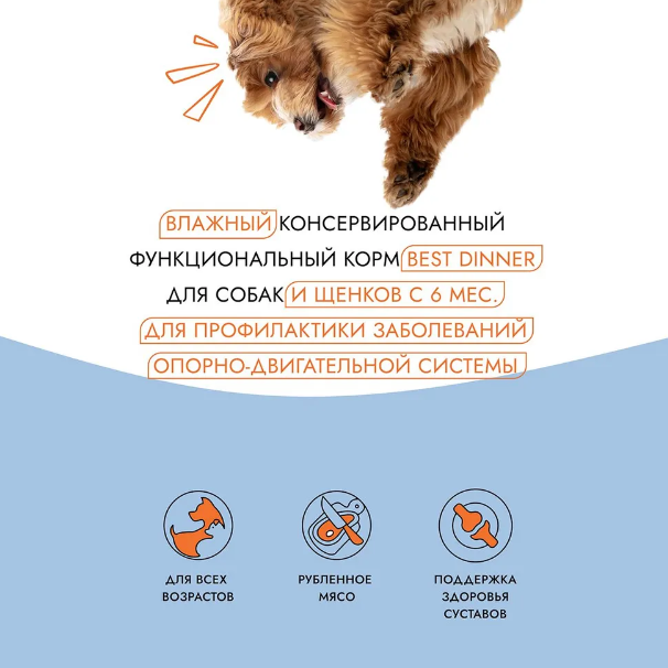 Консервы Best Dinner Exclusive Mobility для собак и щенков всех пород, для опорно-двигательного аппарата. Говядина 340гр