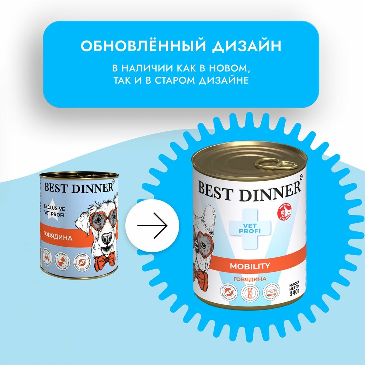 Best Dinner Vet Profi Exclusive Mobility 12шт по 340г говядина консервы для собак