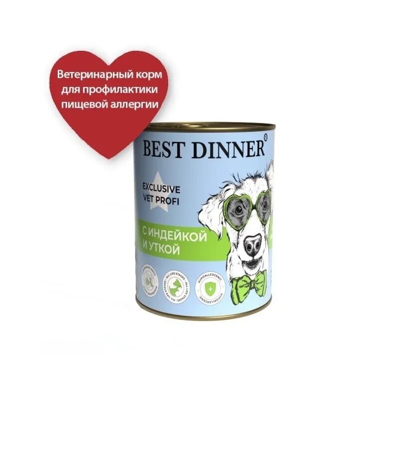 Влажный консервированный корм для собак Best Dinner Exclusive Vet Profi Hypoallergenic С индейкой и уткой, 340г х 6шт