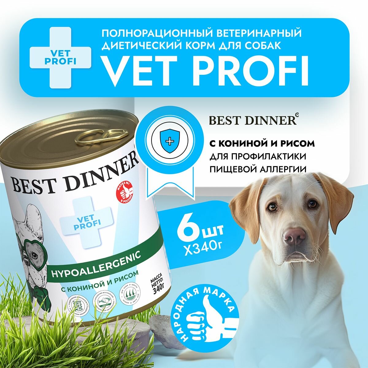 Корм для собак Best Dinner Exclusive Vet Profi Hypoallergenic, гипоаллергенный, конина, с рисом 6 шт. х 340 г