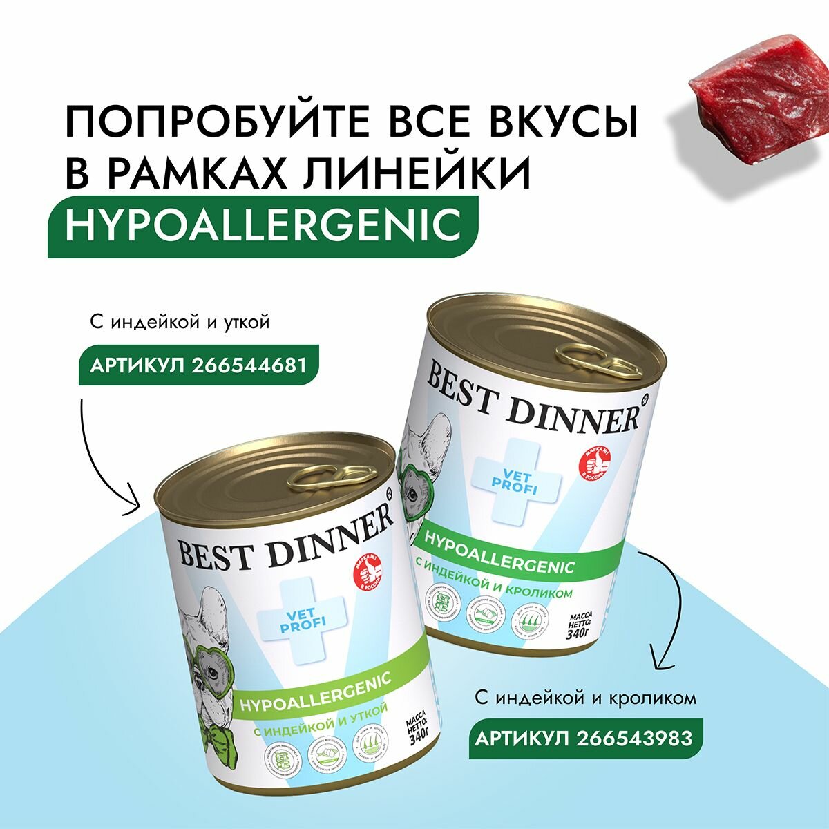 СохранитьКонсервы для собак Best Dinner Hypoallergenic "С кониной и рисом"- 0,34 кг х 6шт интересное: