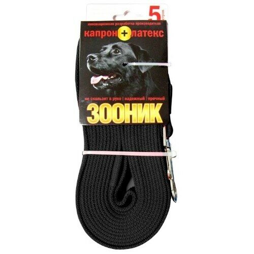 Поводок (Зооник) 5м*20мм, капрон с латексной нитью, черный