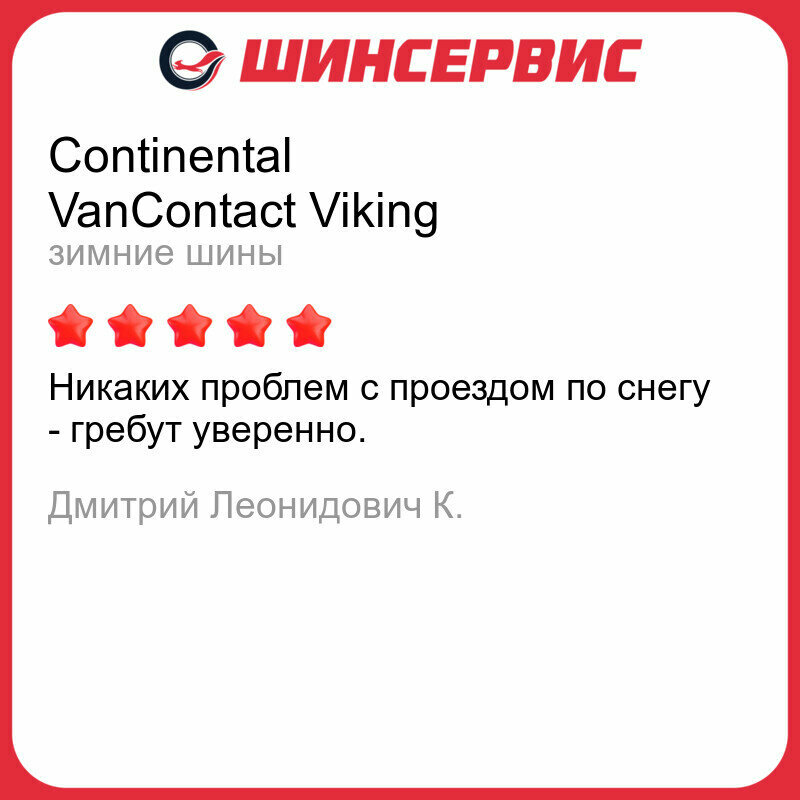 Ниже Вы можете прочитать отзывы на Зимняя нешипованная шина Continental VanContact Viking 215/65 R16C 109/107R, ознакомится с подробными характеристиками, посмотреть интересные обзоры и фотографии на Зимняя нешипованная шина Continental VanContact Viking 215/65 R16C 109/107R.
