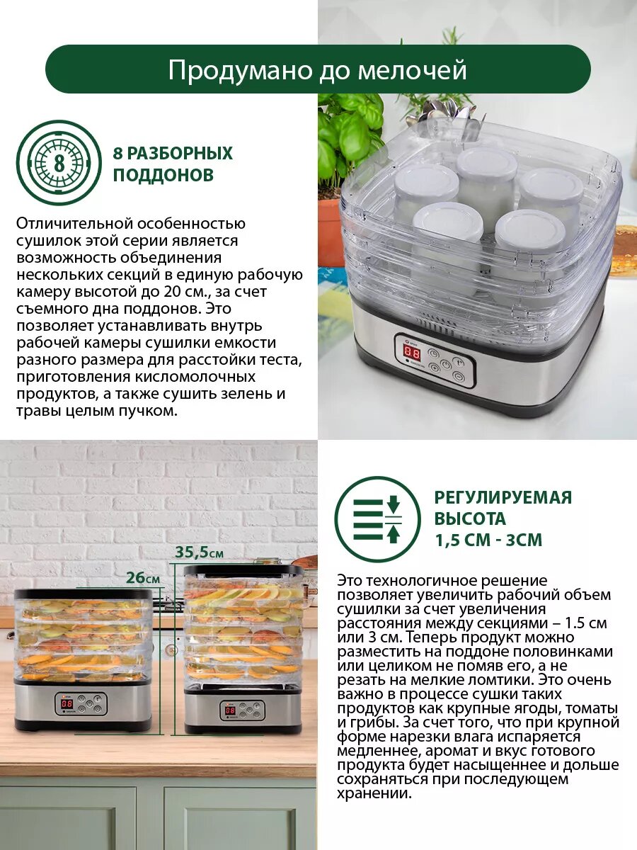 Сушилка для Овощей и фруктов 8 поддонов 20 л интересное: