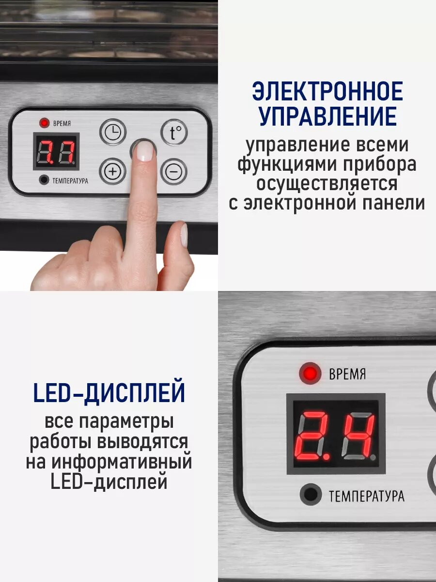 | Плюсы: | Мощность, 5 поддонов, большой объём, регулировки температуры и высоты поддонов |