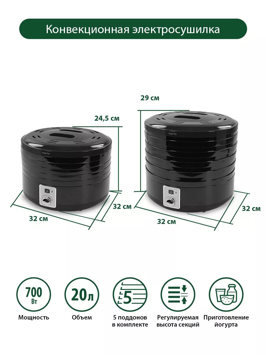 MARTA MT-1953 5 поддонов черный жемчуг сушилка д/фруктов,овощей