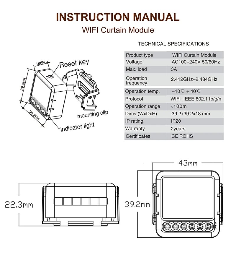 Модуль жалюзи Tuya Smart WiFi Zigbee, wifi A