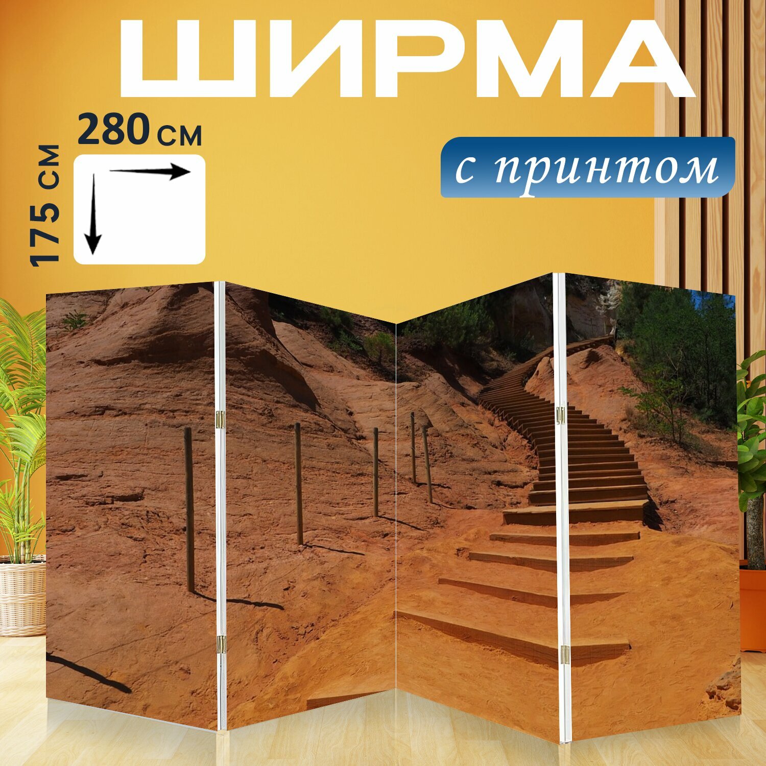 Купить Ширма "Лестница, этапы, заповедник" перегородка для зонирования комнаты с принтом 280x175 см. на холсте