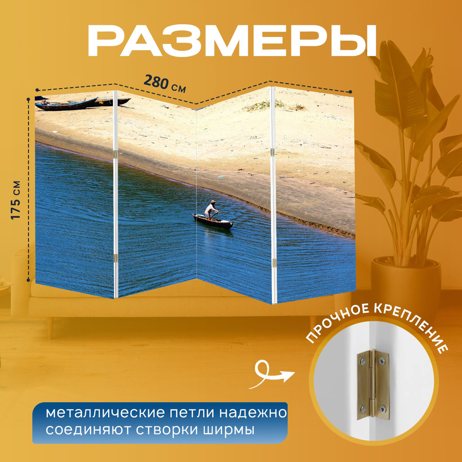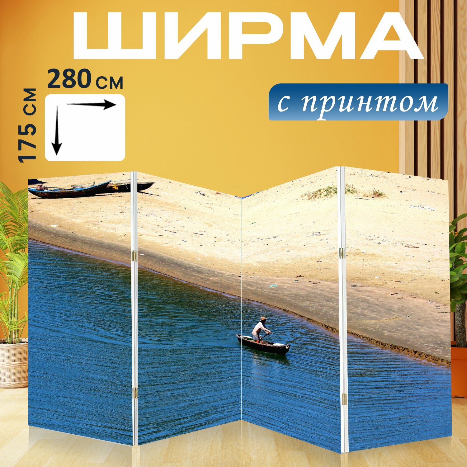 Ширма "Вьетнам, дананг, рыбак" перегородка для зонирования комнаты с принтом 280x175 см. на холсте интересное: