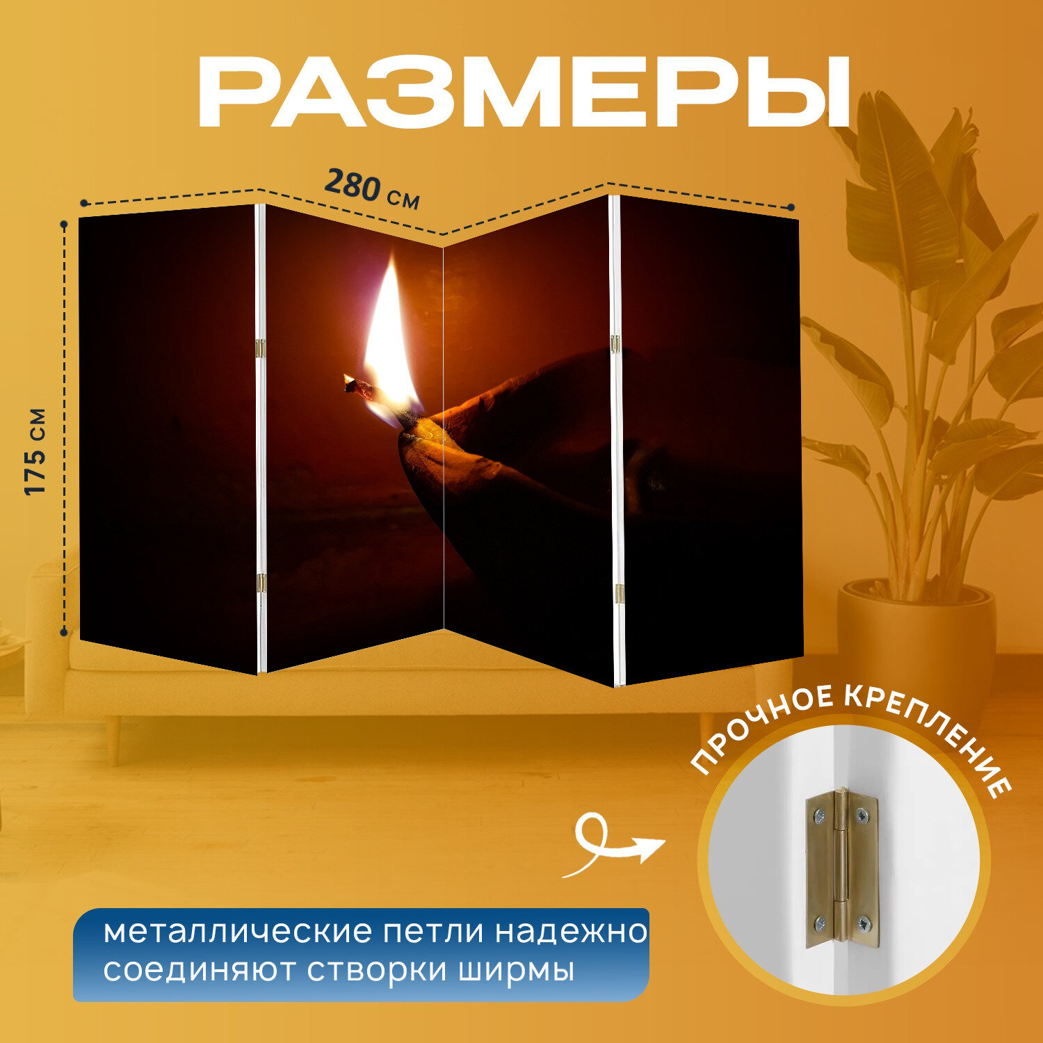 Ширма "Дивали, индийский тестирования, вблизи свет" перегородка для зонирования комнаты с принтом 280x175 см. на холсте интересное: