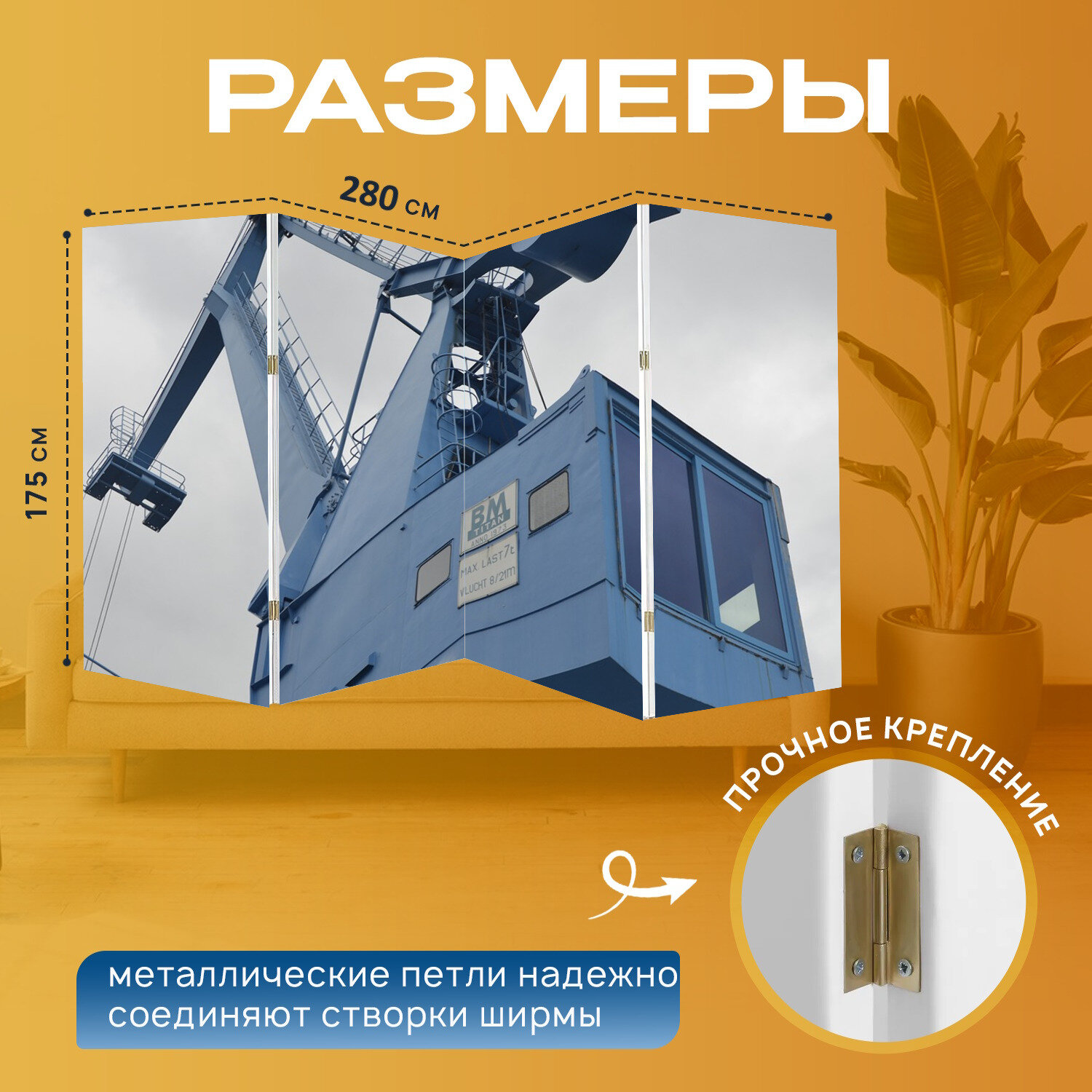Ширма "Кран, порт, перевозки" перегородка для зонирования комнаты с принтом 280x175 см. на холсте интересное: