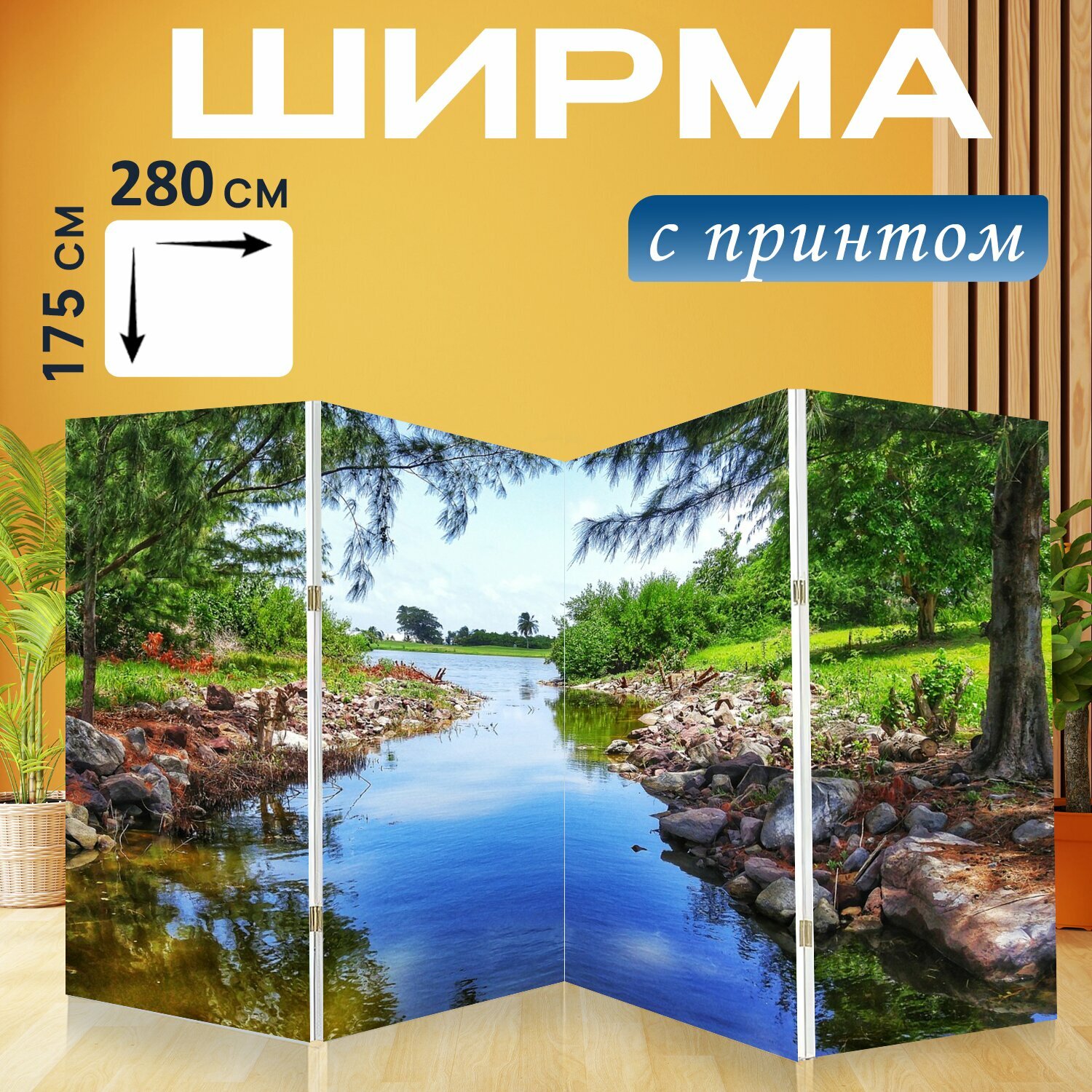Ширма "Святой, котята, карибский бассейн" перегородка для зонирования комнаты с принтом 280x175 см. на холсте интересное: