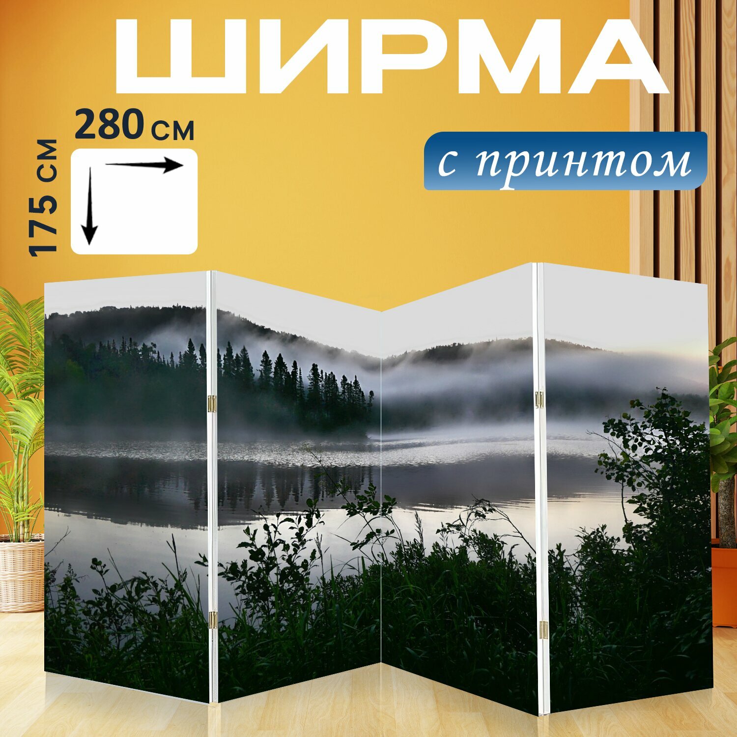 Ширма "Пейзаж, природа, туман" перегородка для зонирования комнаты с принтом 280x175 см. на холсте интересное: