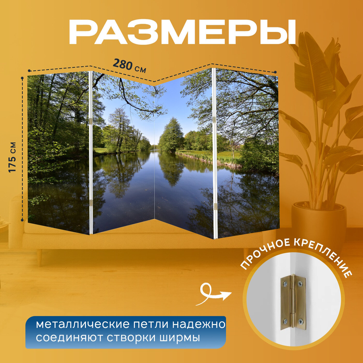 Ширма "Лес, озеро, пейзаж" перегородка для зонирования комнаты с принтом 280x175 см. на холсте интересное: