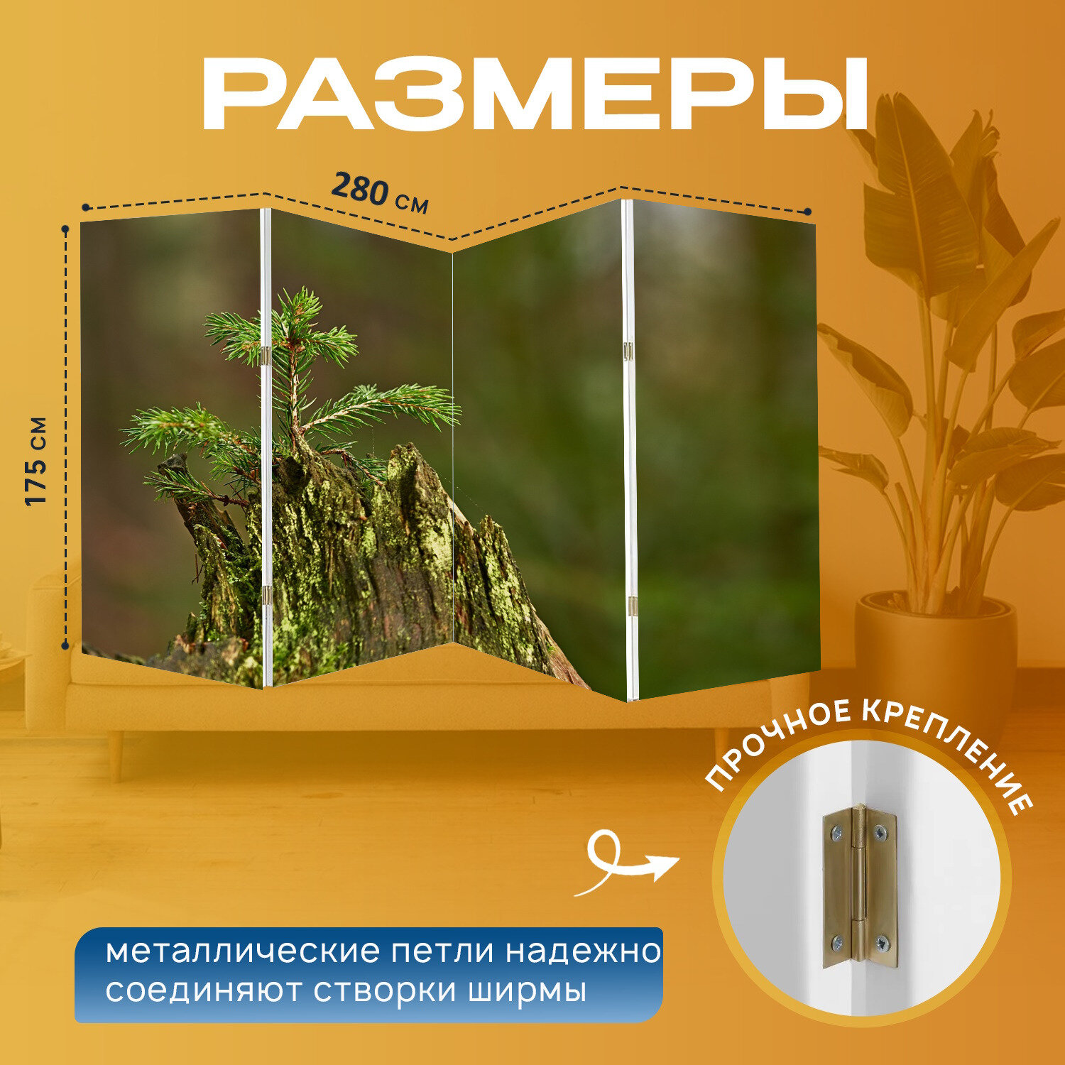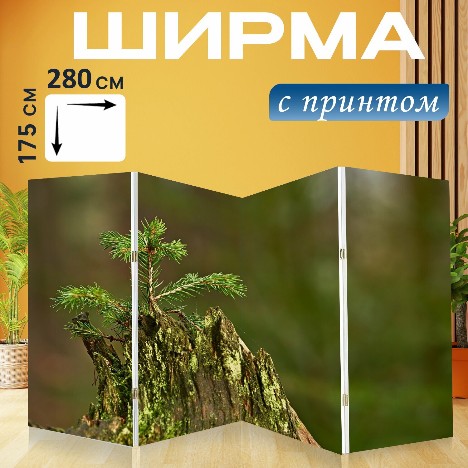 Ширма "Пень, ствол, растения" перегородка для зонирования комнаты с принтом 280x175 см. на холсте интересное: