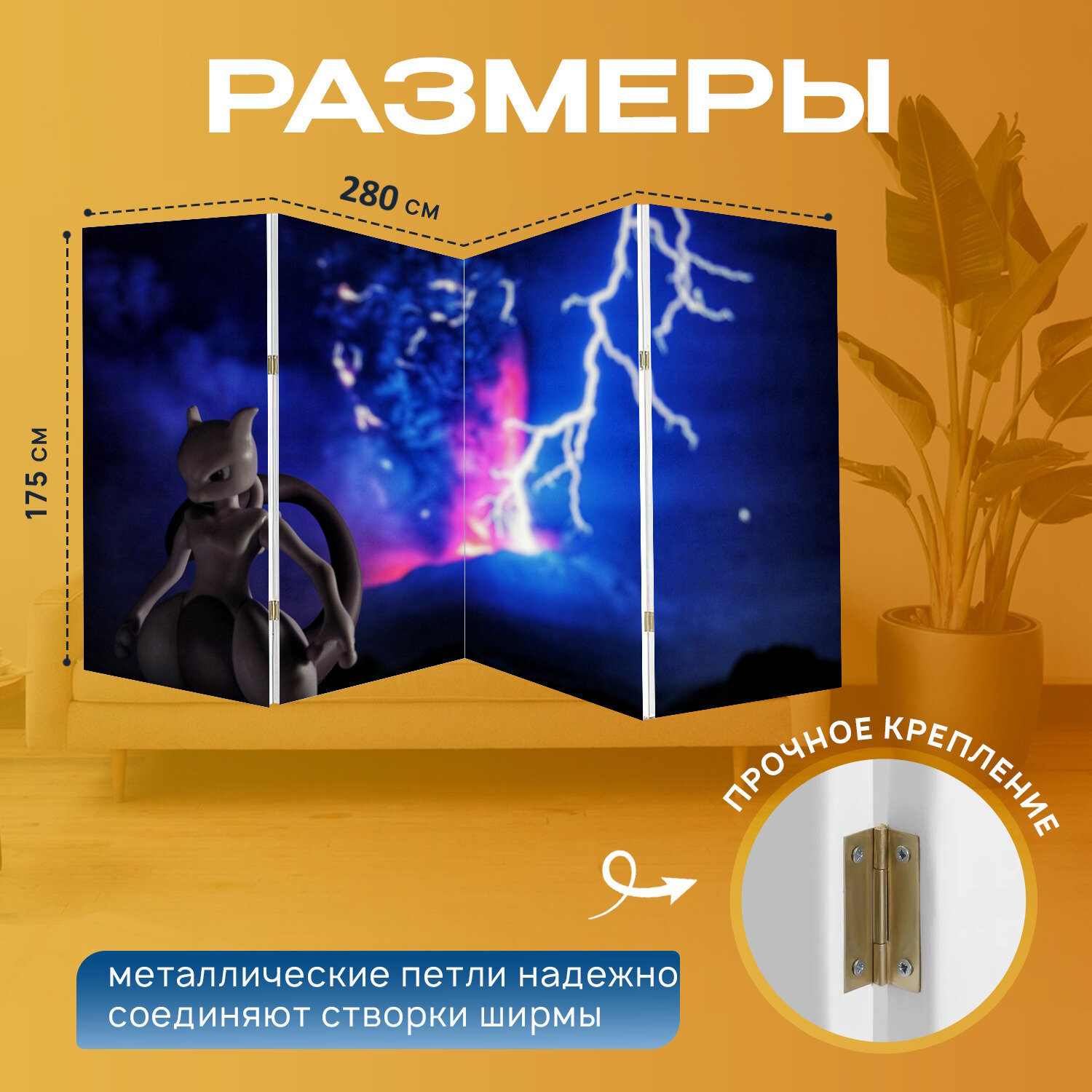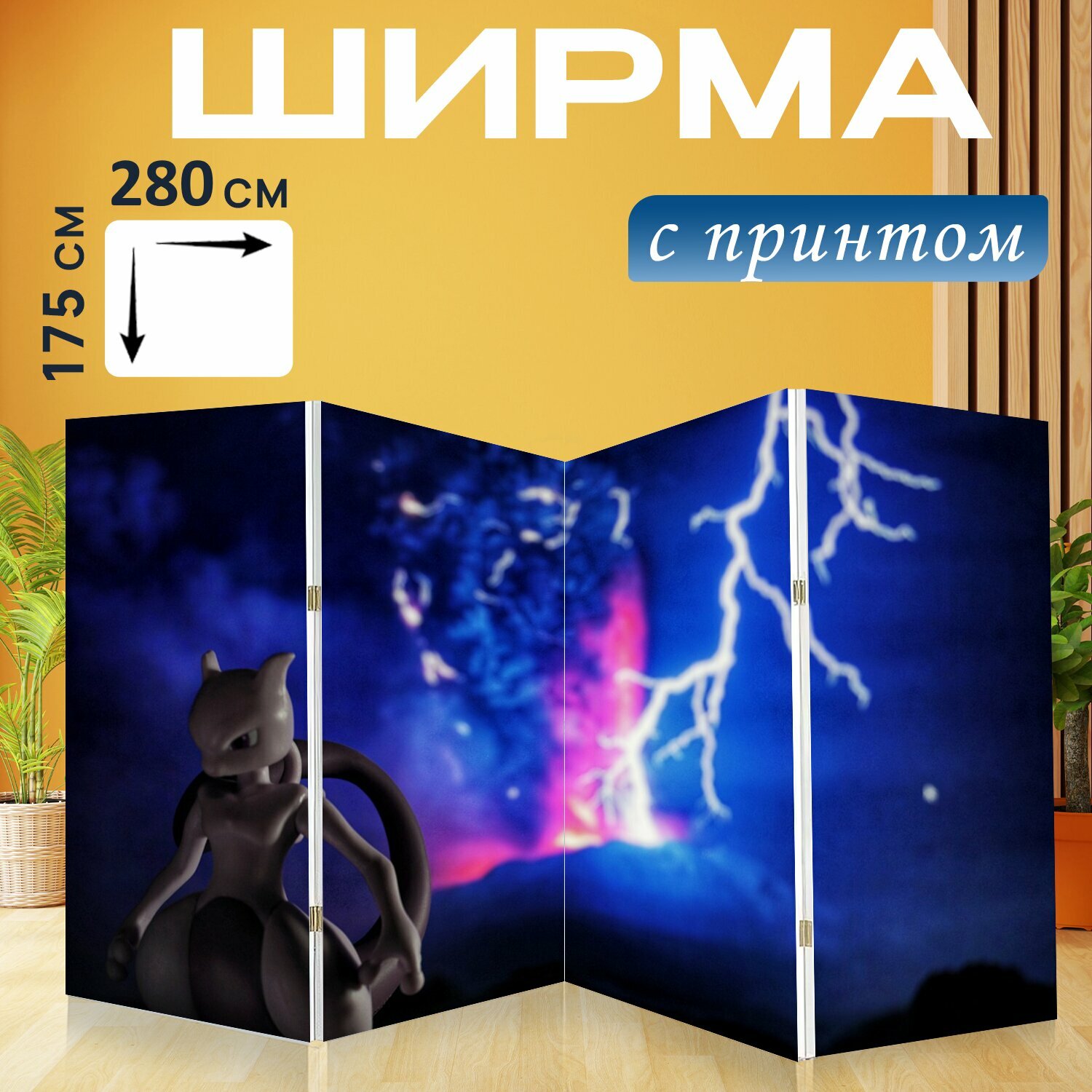 Ширма "Игрушки, покемон, вулкан" перегородка для зонирования комнаты с принтом 280x175 см. на холсте интересное: