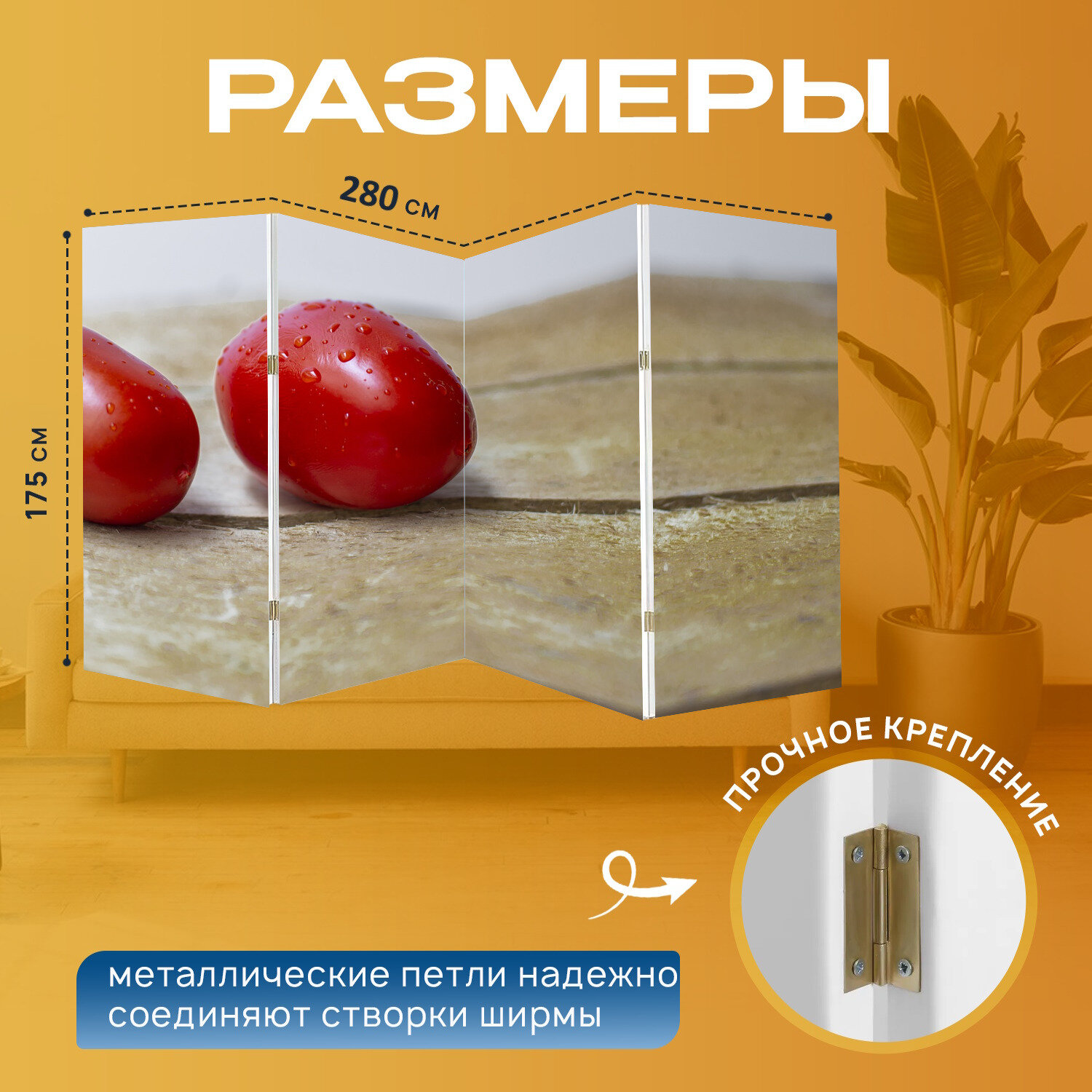 Ширма "Помидор почек, фрукты, здоровый" перегородка для зонирования комнаты с принтом 280x175 см. на холсте интересное: