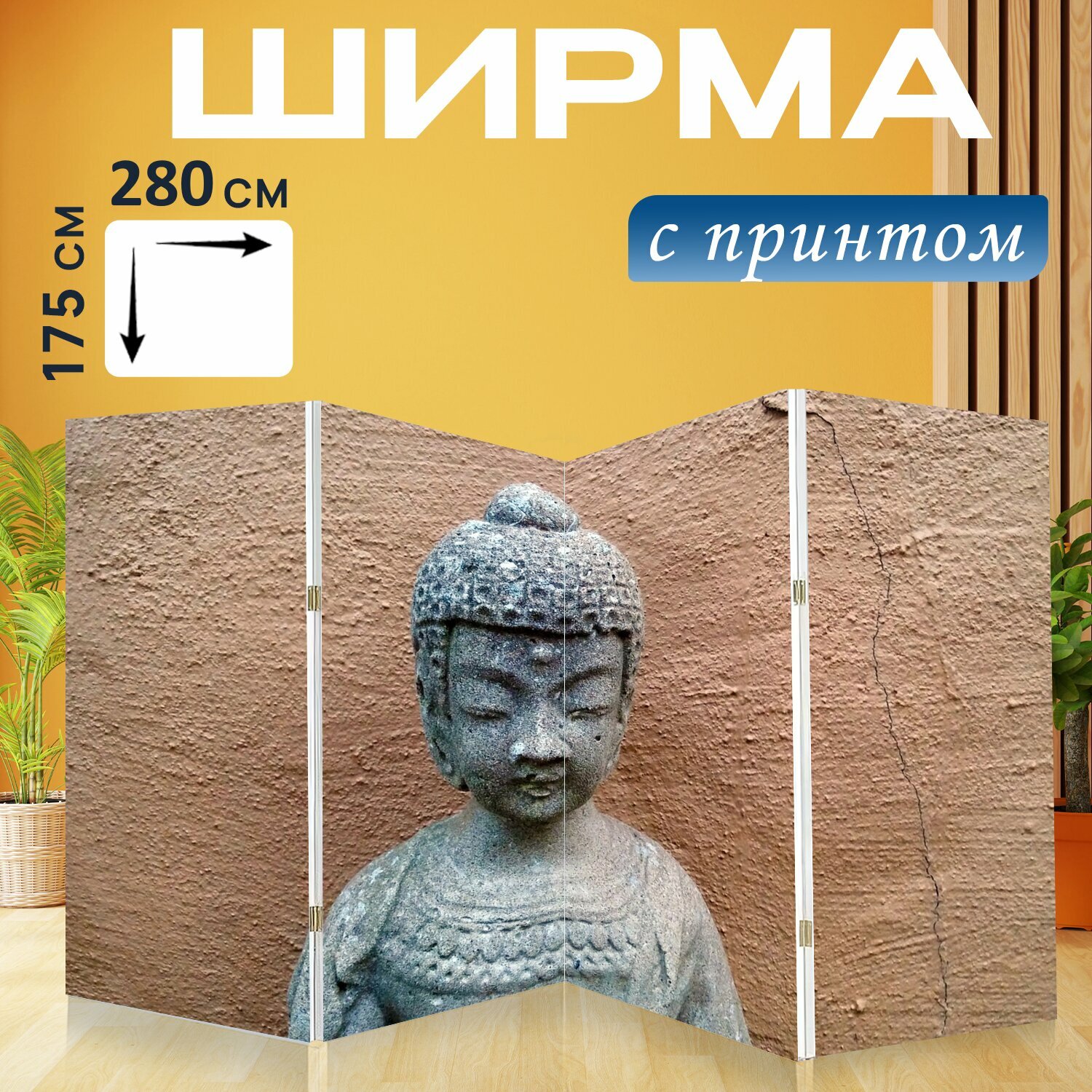Ширма "Будда, статуя, религия" перегородка для зонирования комнаты с принтом 280x175 см. на холсте интересное: