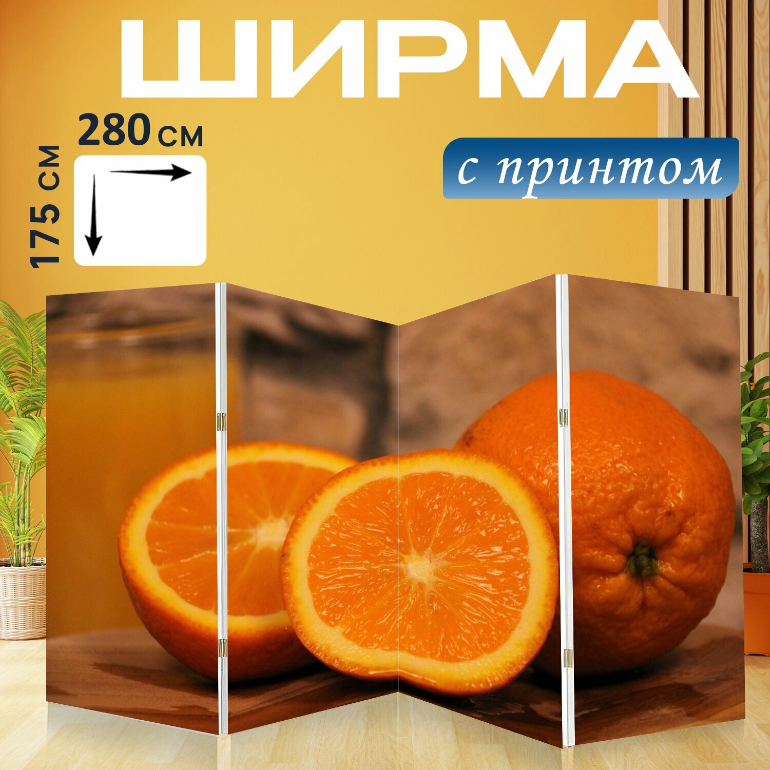 Ширма "Апельсин, сок, фрукты" перегородка для зонирования комнаты с принтом 280x175 см. на холсте интересное: