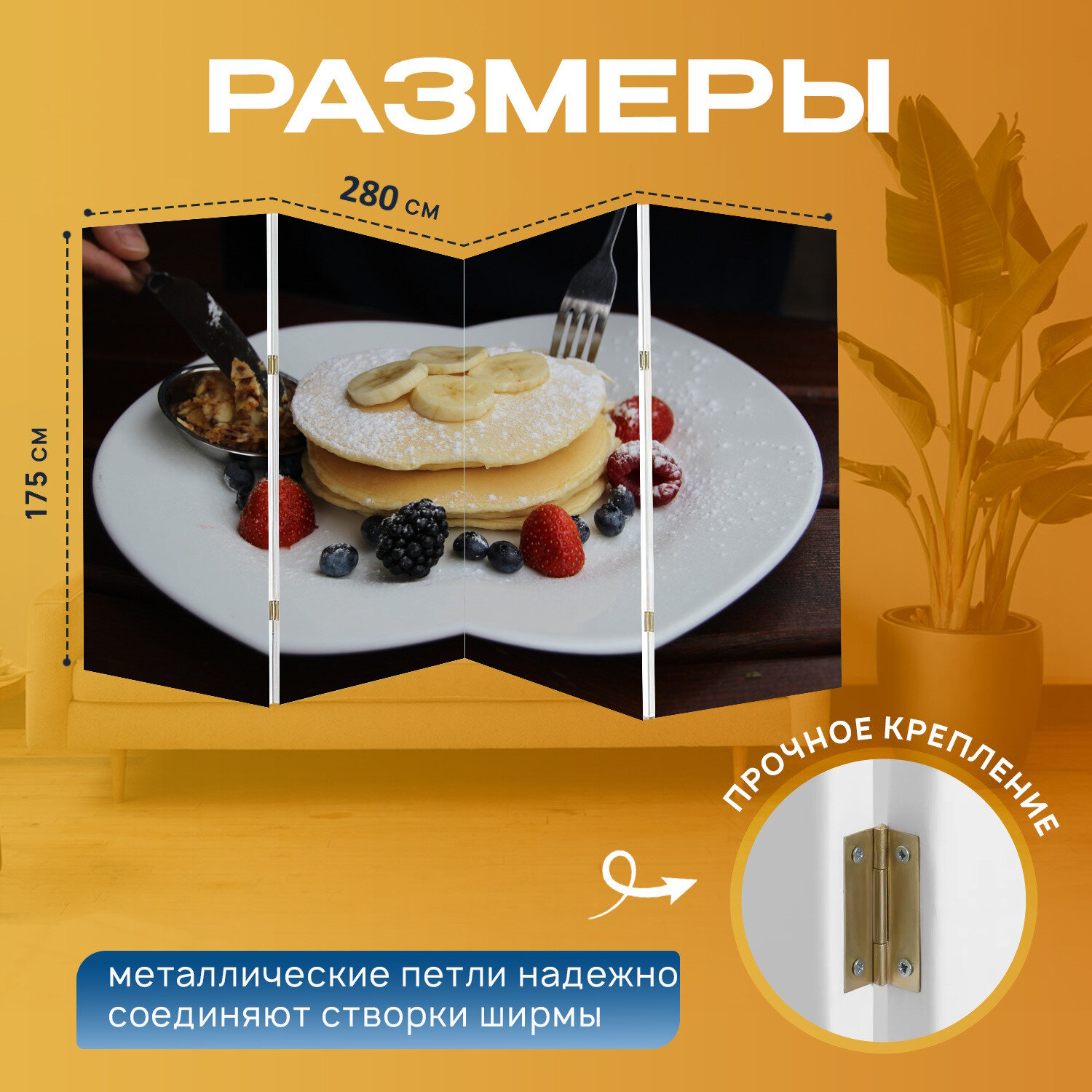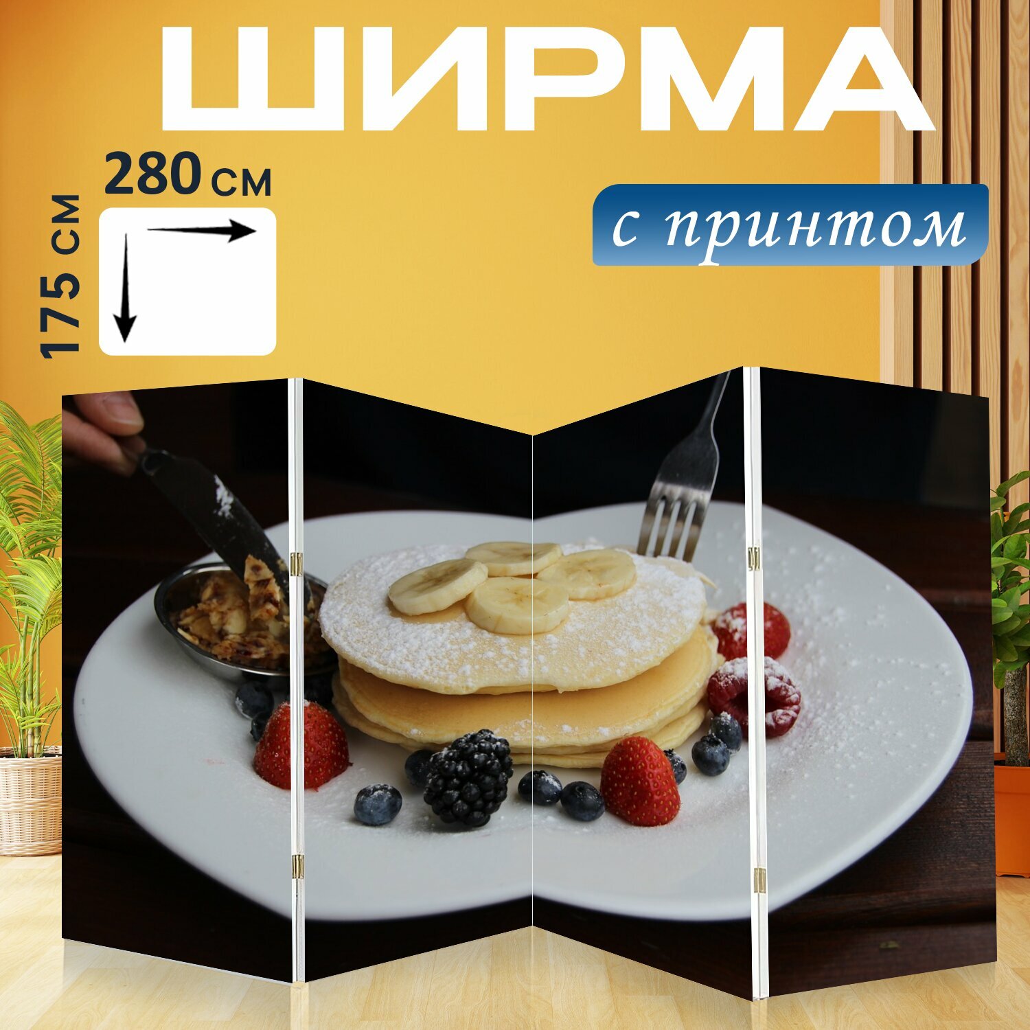 Ширма "Еда, блины, блин" перегородка для зонирования комнаты с принтом 280x175 см. на холсте интересное: